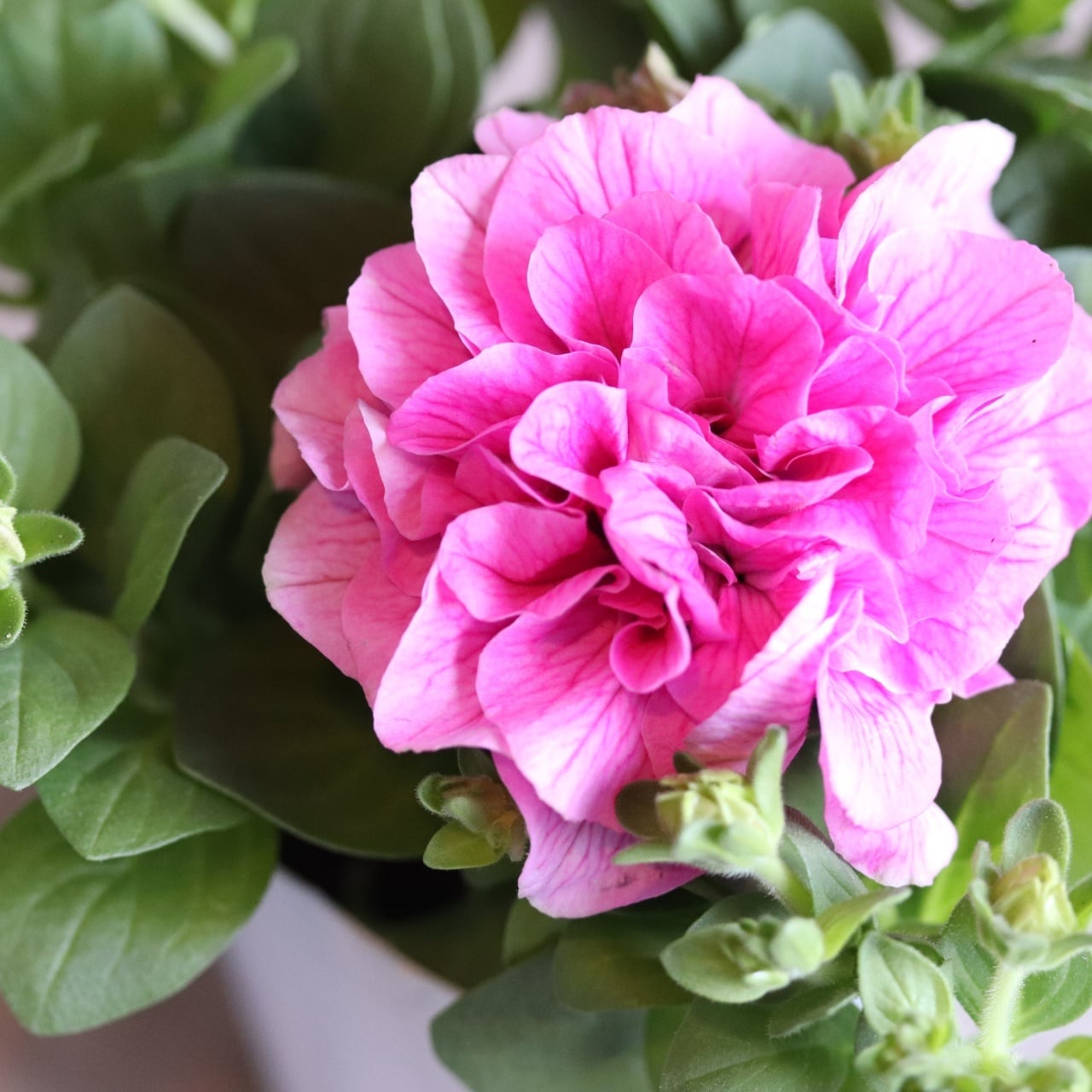 1ポットで25センチ位の鉢いっぱいに広がるペチュニア