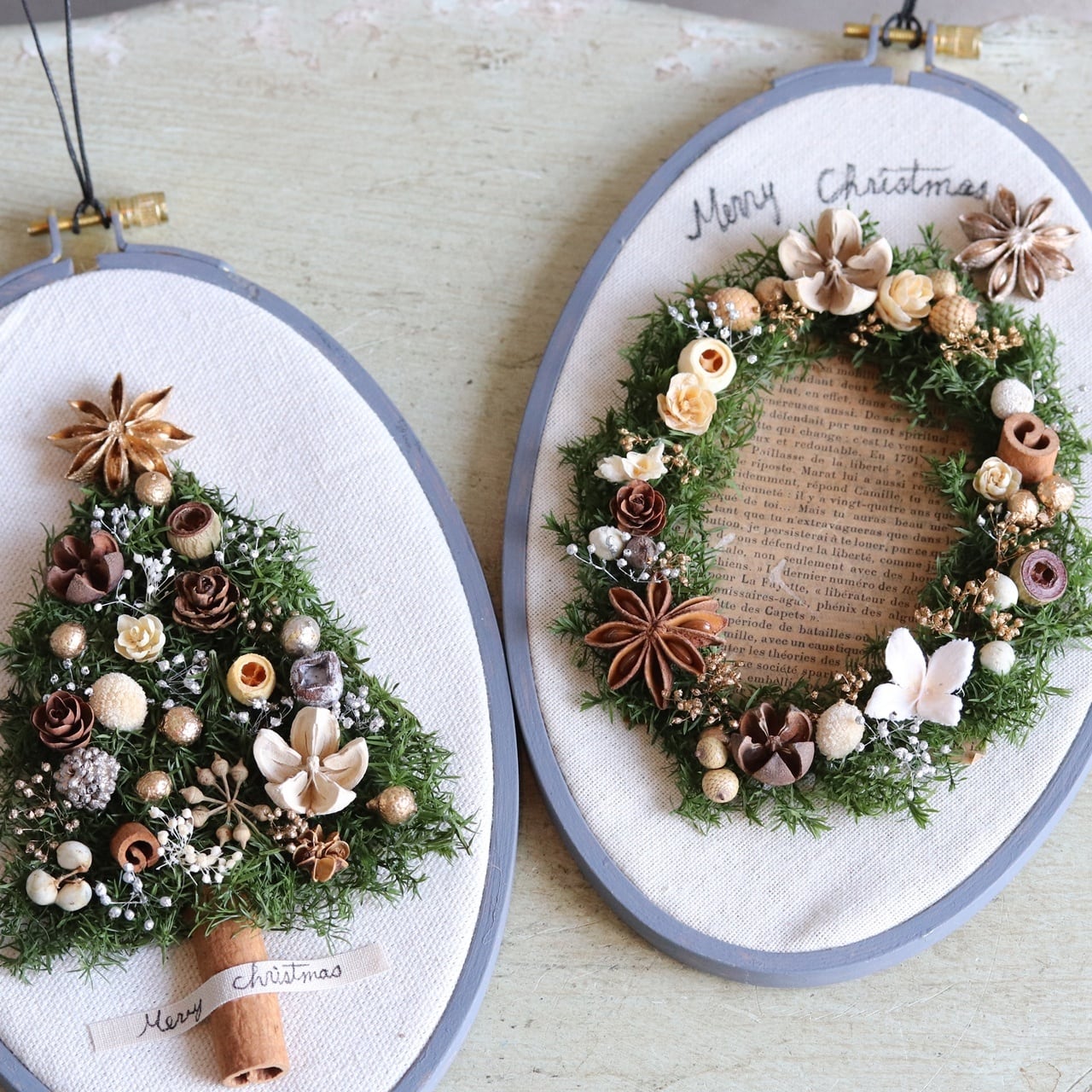 お部屋にやさしく溶け込む、刺繍枠アレンジのフラワーフレーム