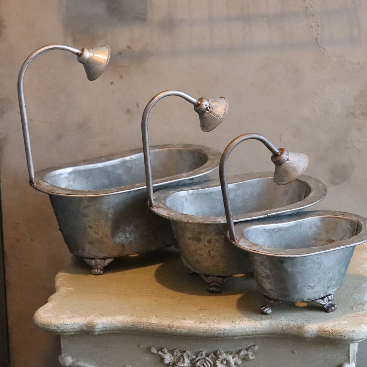 ブリキ植木鉢 ブリキバスタブポットL シャビーシック オシャレ 4065