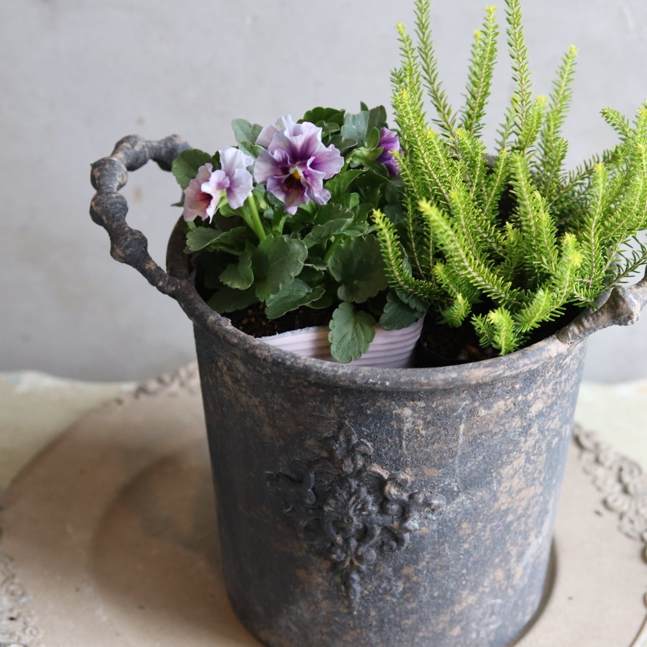 お花は春まで楽しめるビオラです。