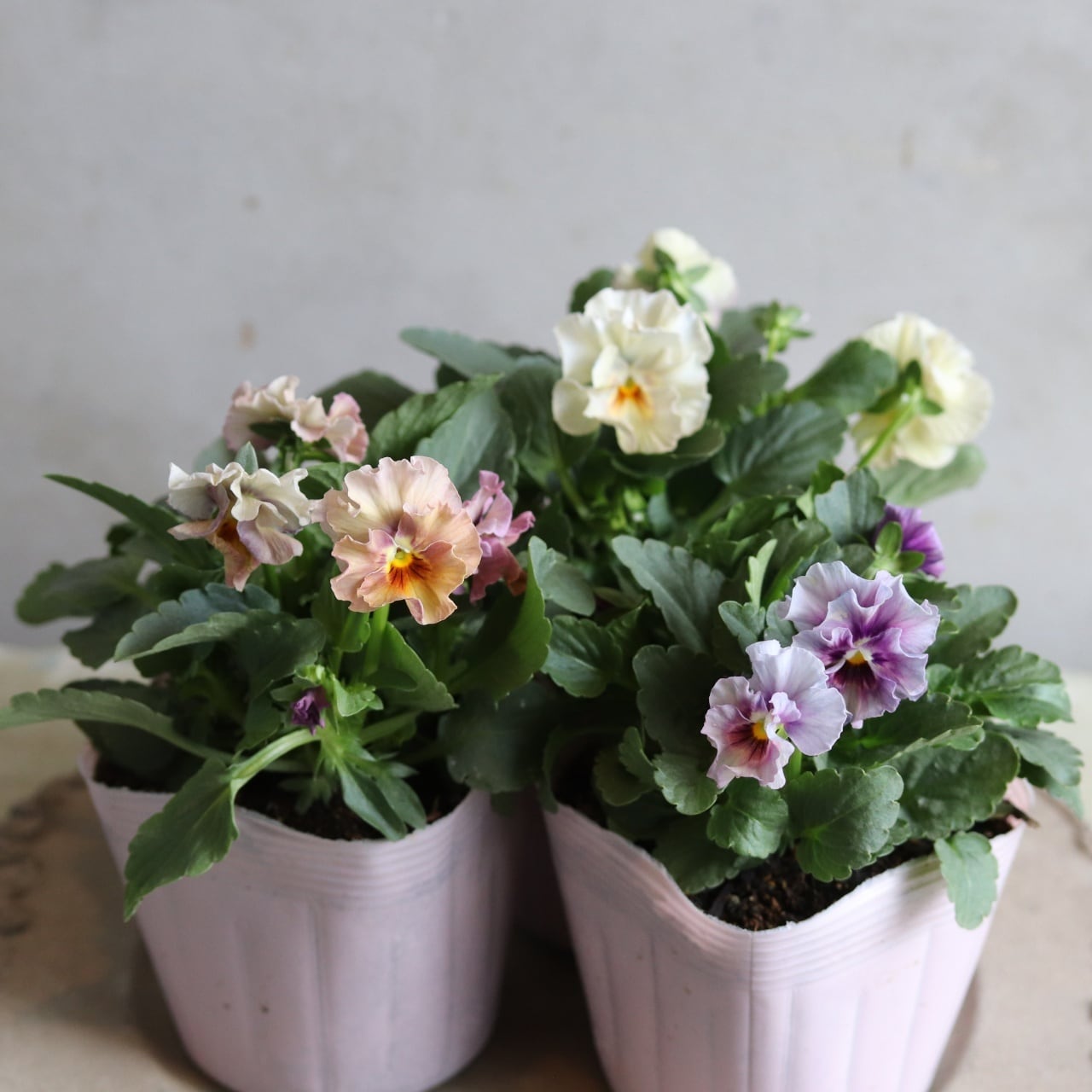 繊細なお花色の小輪のパンジーです
