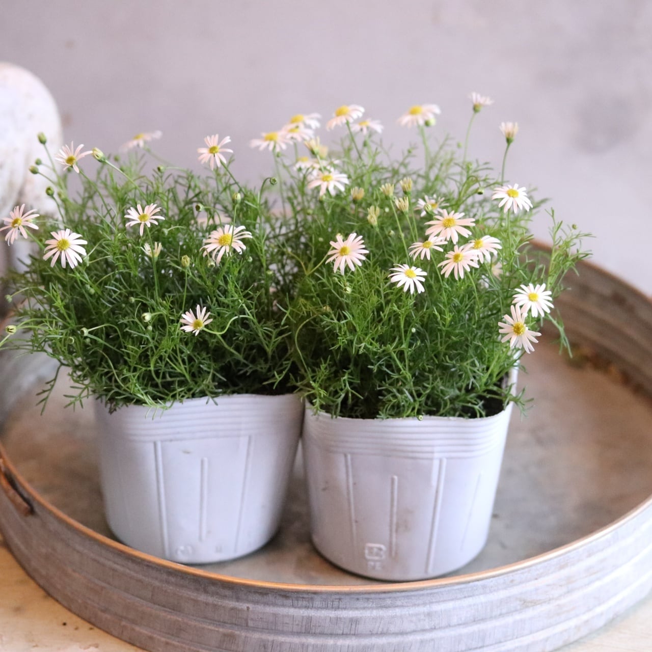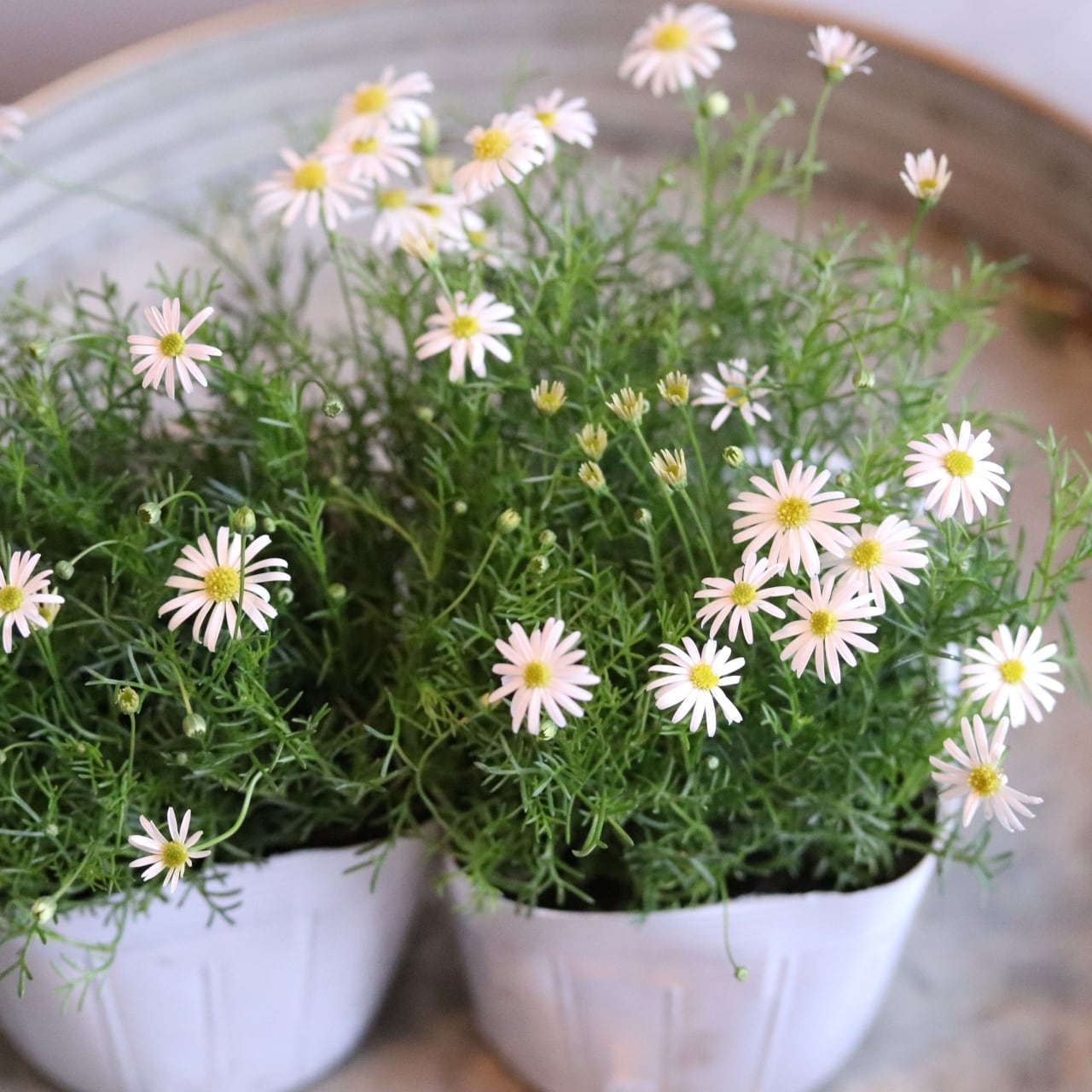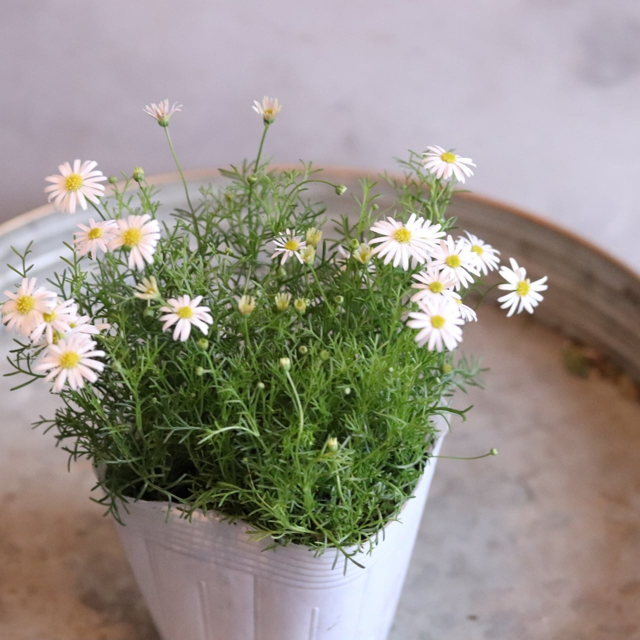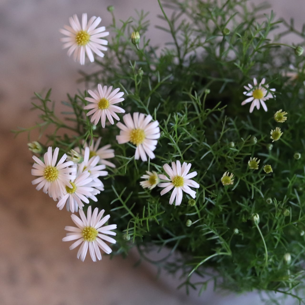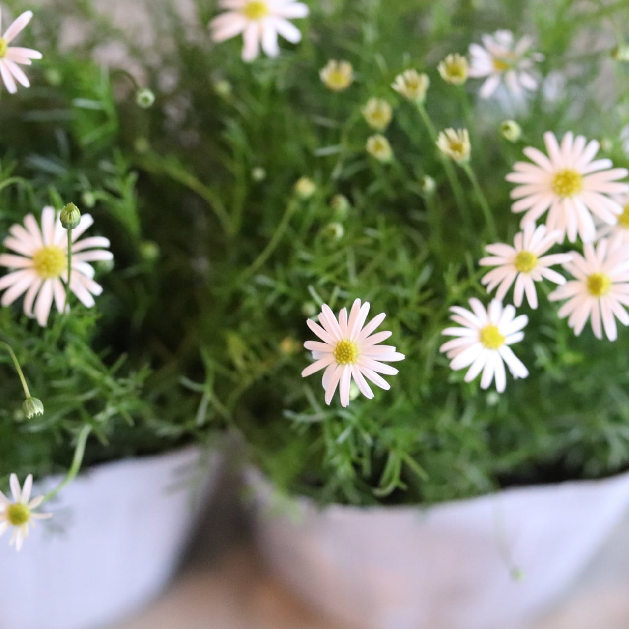 ブラキカム ホワイティ よく咲くお花 野原のような寄せ植え 自然な感じ 白いお花 寄せ植えにオススメ 宿根草、爽やかな寄せ植えに