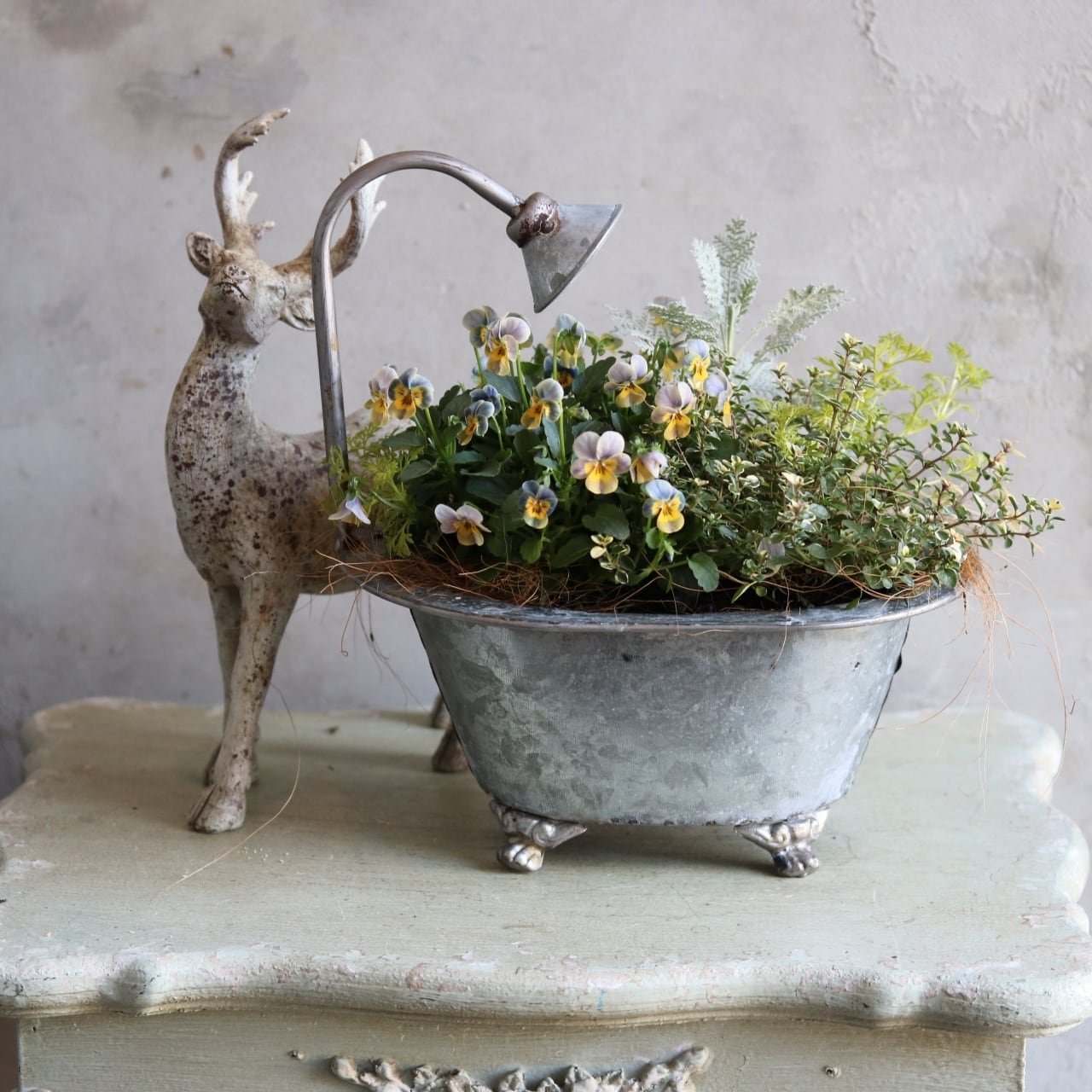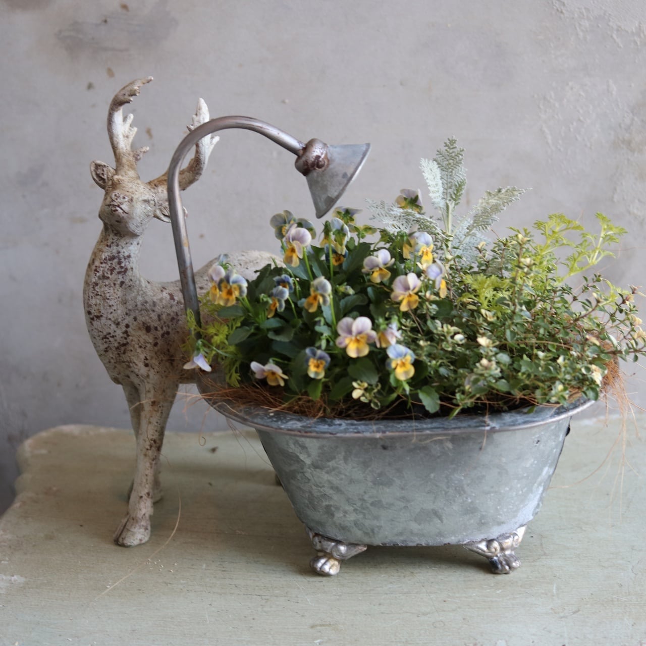 冬かや春に楽しむ寄せ植え|バスタブMビオラヴィオレッタのナチュラルグリーンの寄せ植え 届いてすぐ玄関に飾れる プレゼントにもオススメ