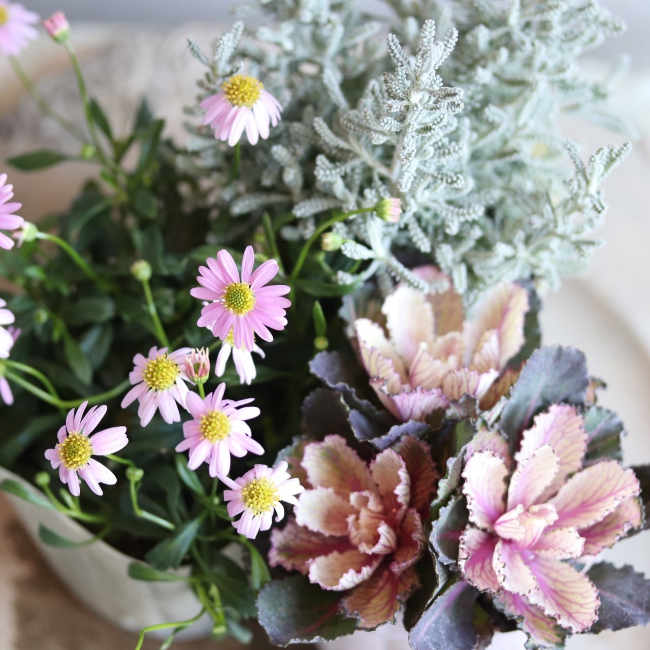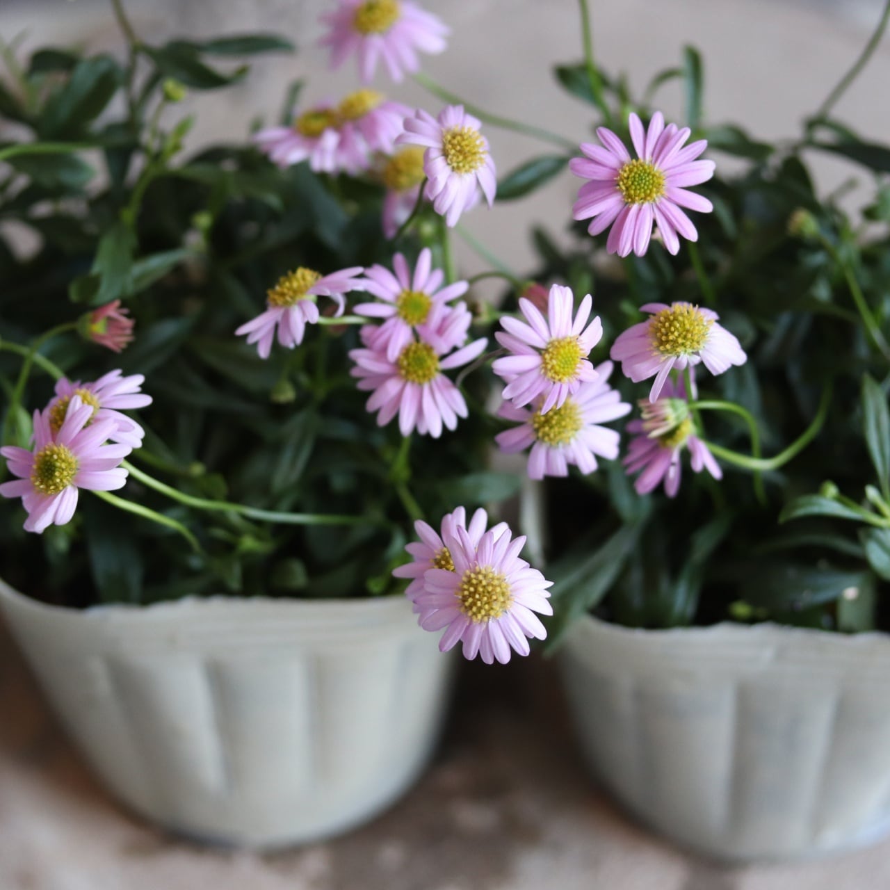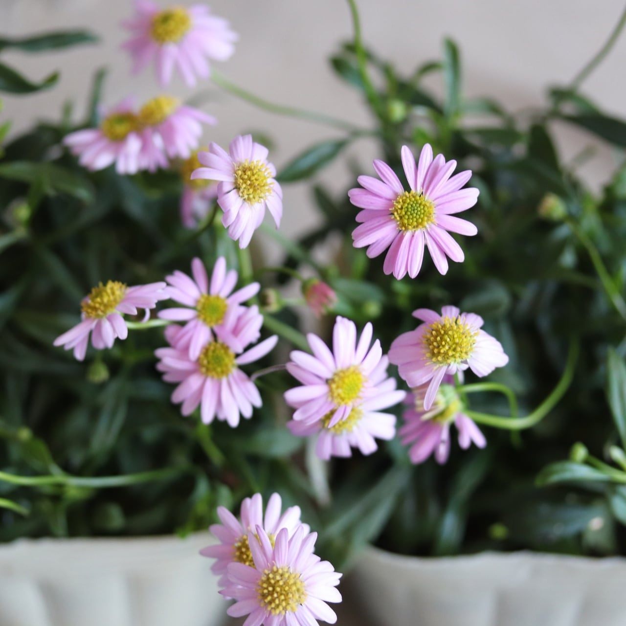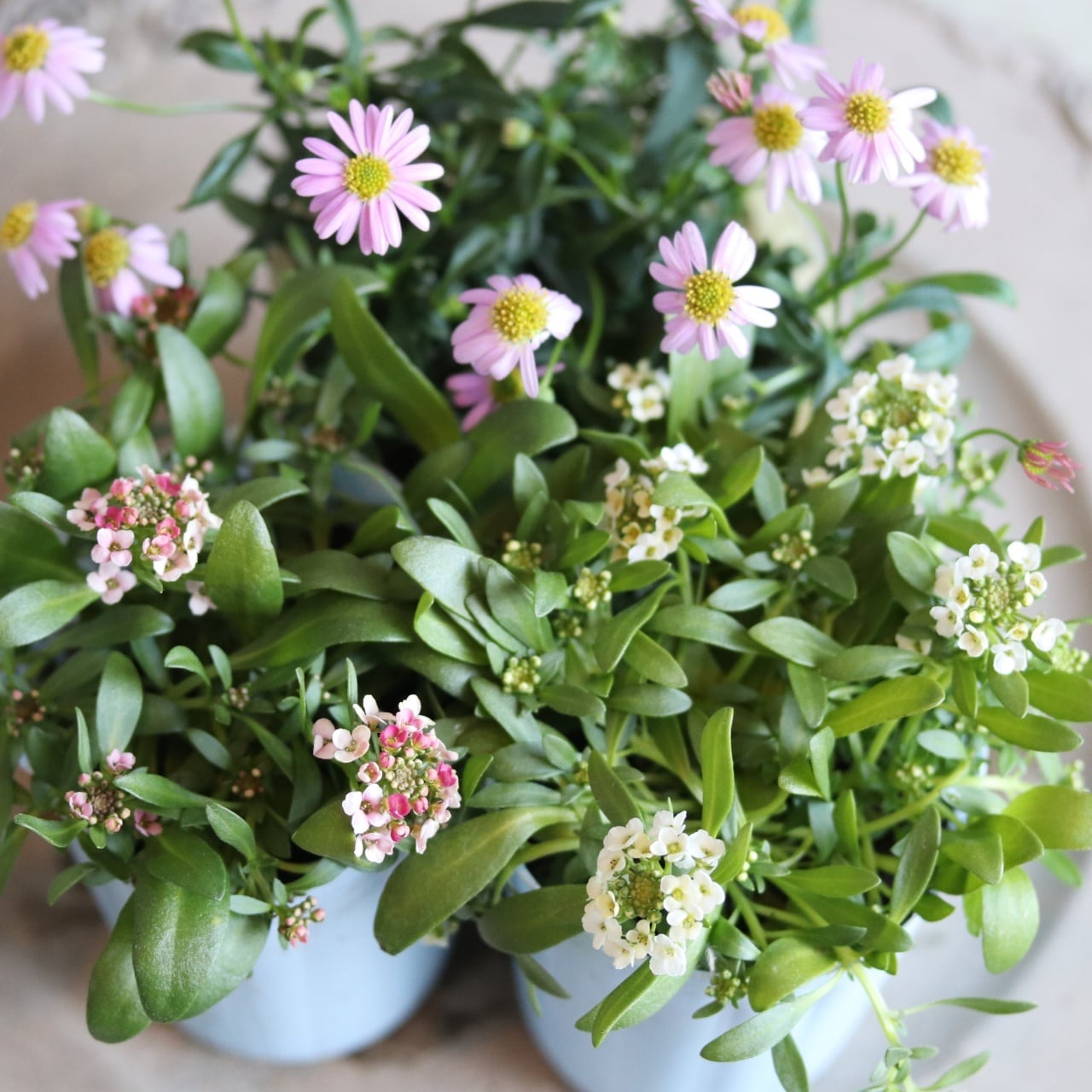 ブラキカム パシフィックアイランド ピンク よく咲くお花 野原のような寄せ植え 自然な感じ 白いお花 寄せ植えにオススメ 宿根草、爽やかな寄せ植えに