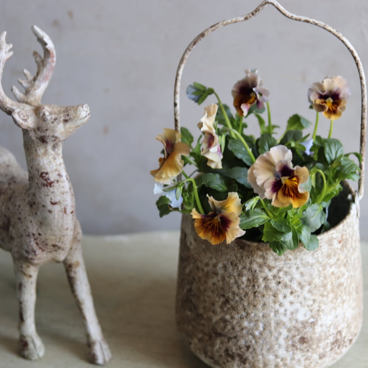 お花は春まで楽しめるパンジーです。