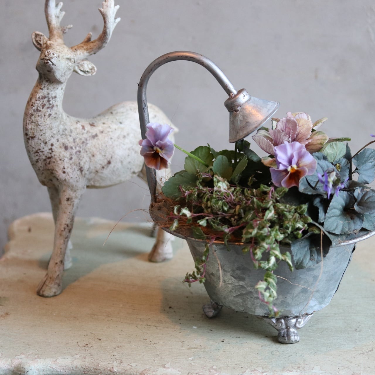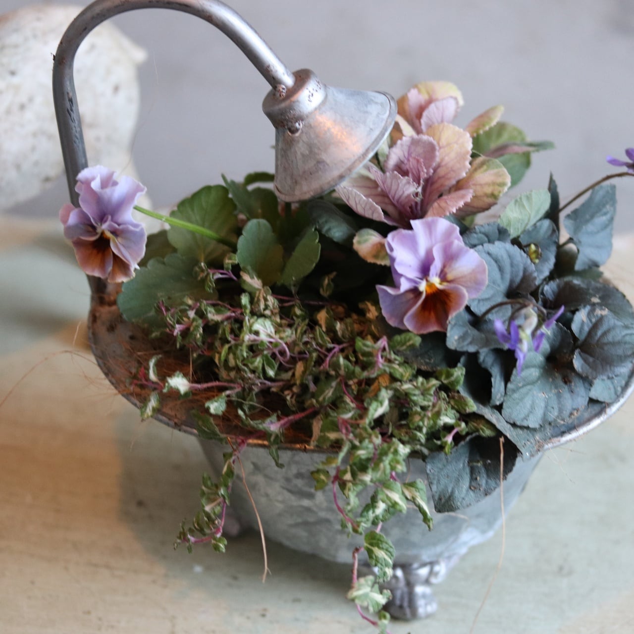 冬から春に楽しむ寄せ植え 和モダンビオラとシックなハボタンとバスタブの寄せ植え 届いてすぐ玄関に飾れる プレゼントにもオススメ
