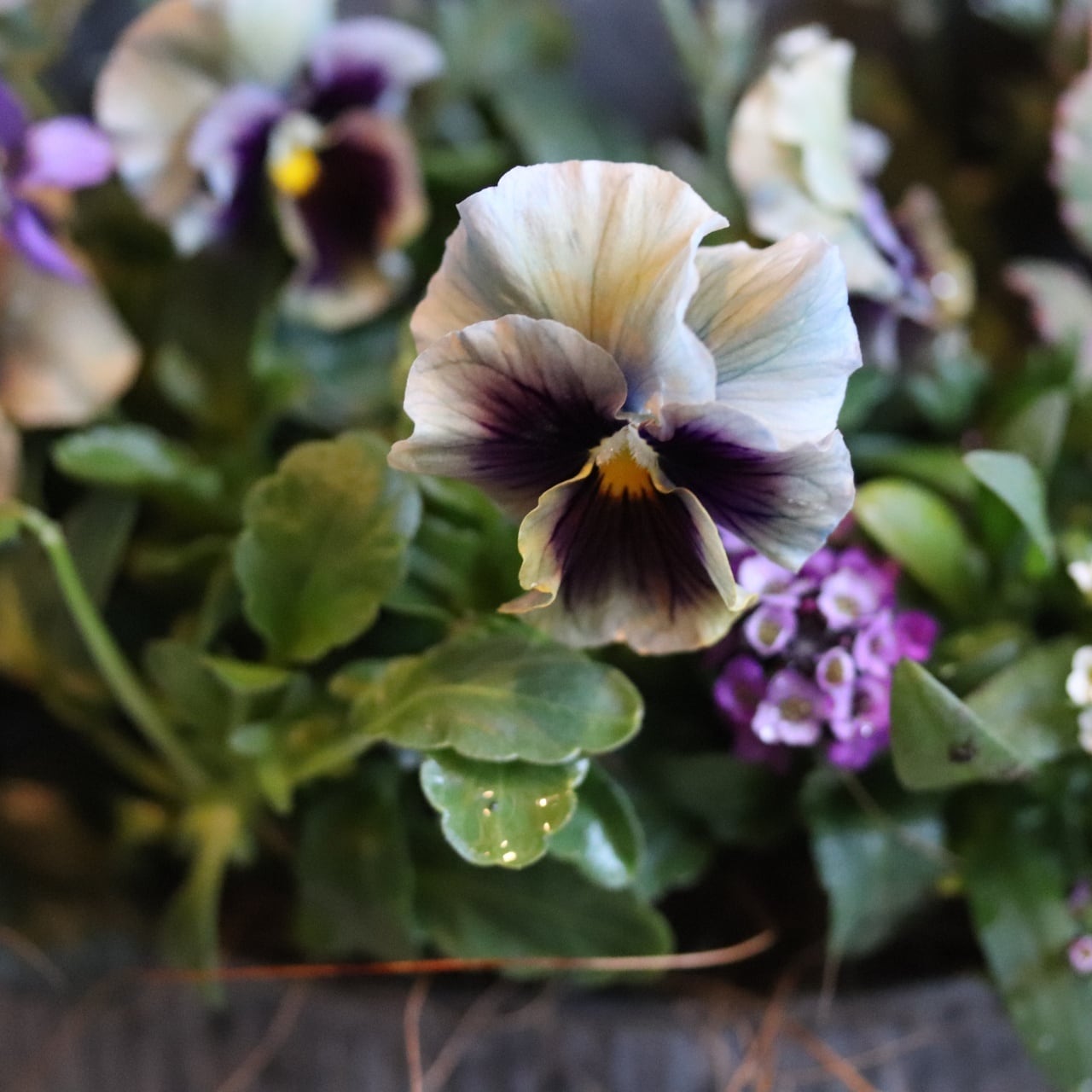シックなカラーだけど華やかなパンジーマシェリマダムが入っています