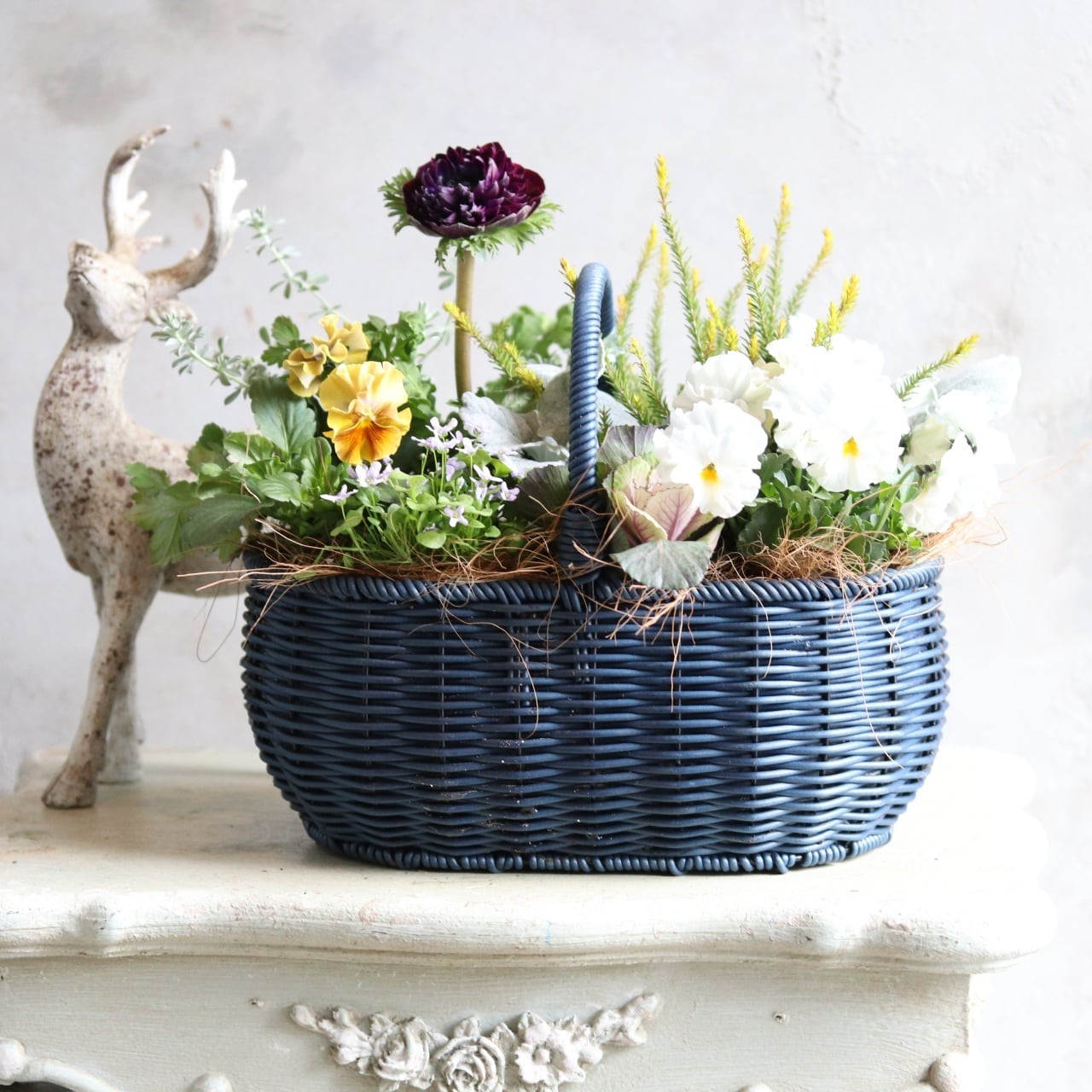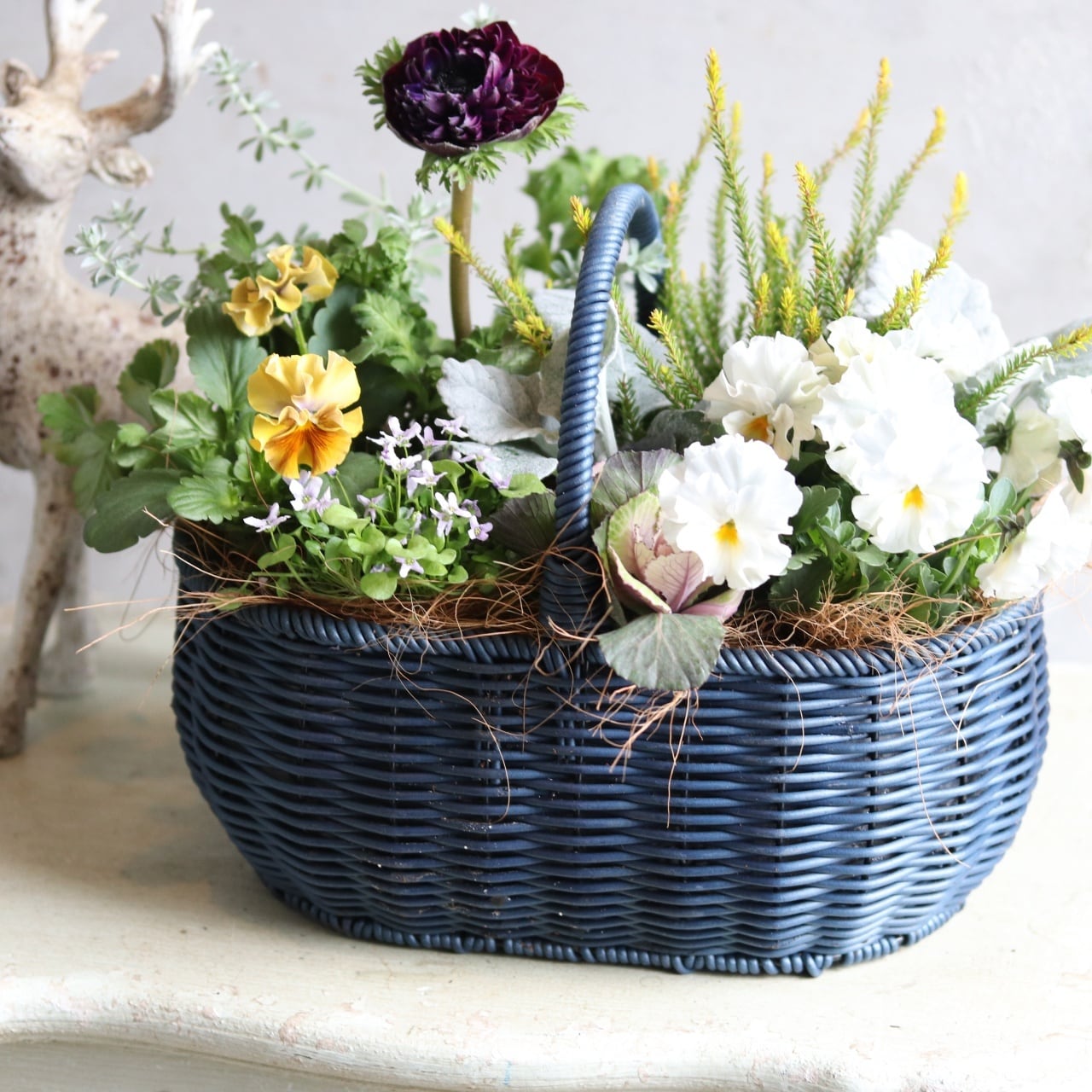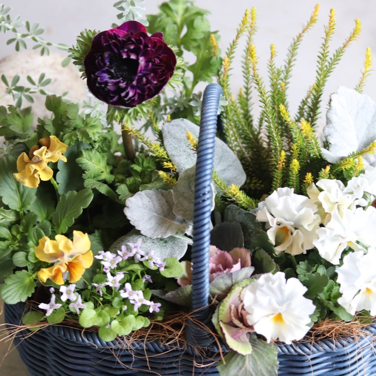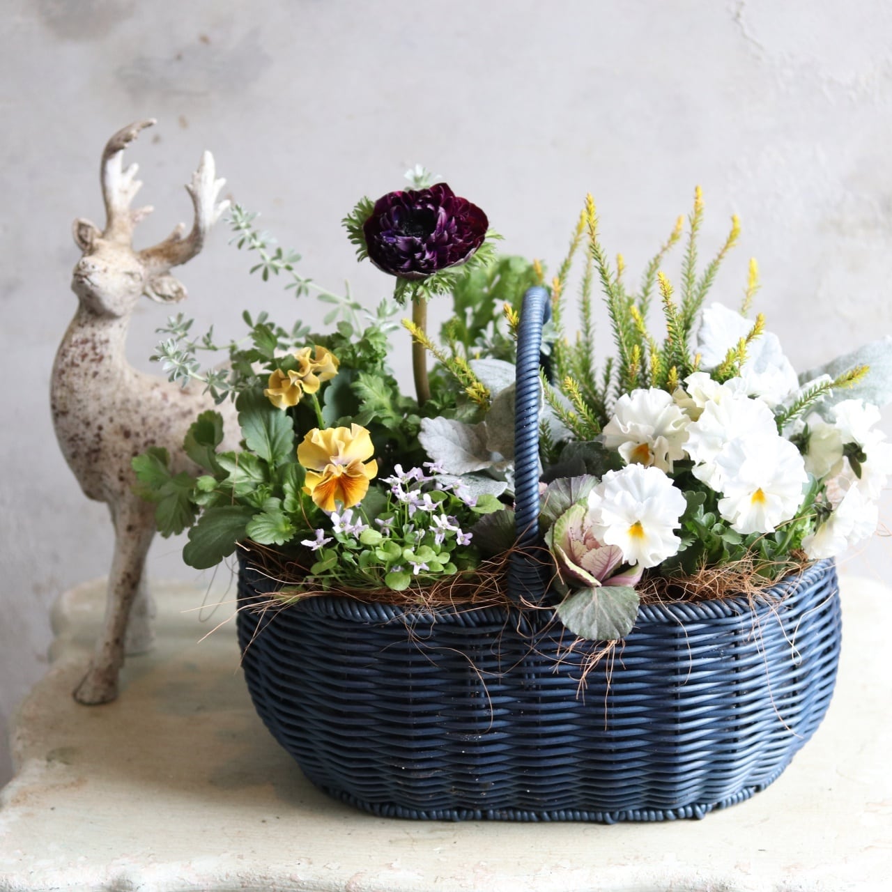 冬から春に楽しむ寄せ植え アネモネファネモスとビオラの春まで綺麗なバスケットの寄せ植え お正月にオススメ 届いてすぐ玄関に飾れる プレゼントにもオススメ