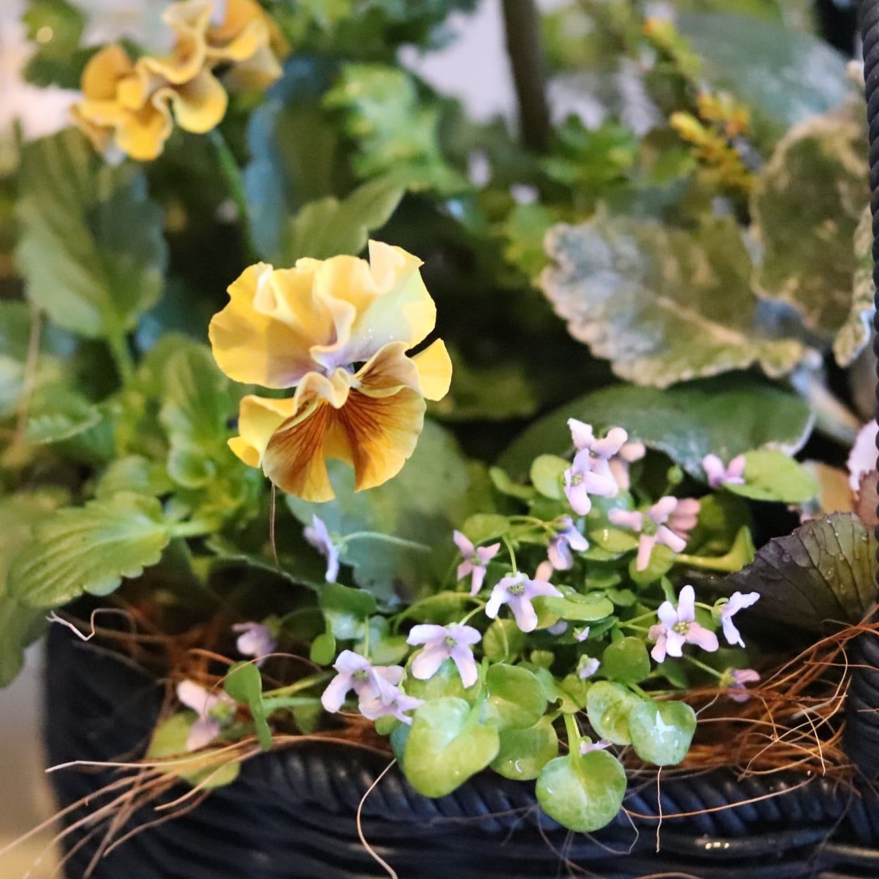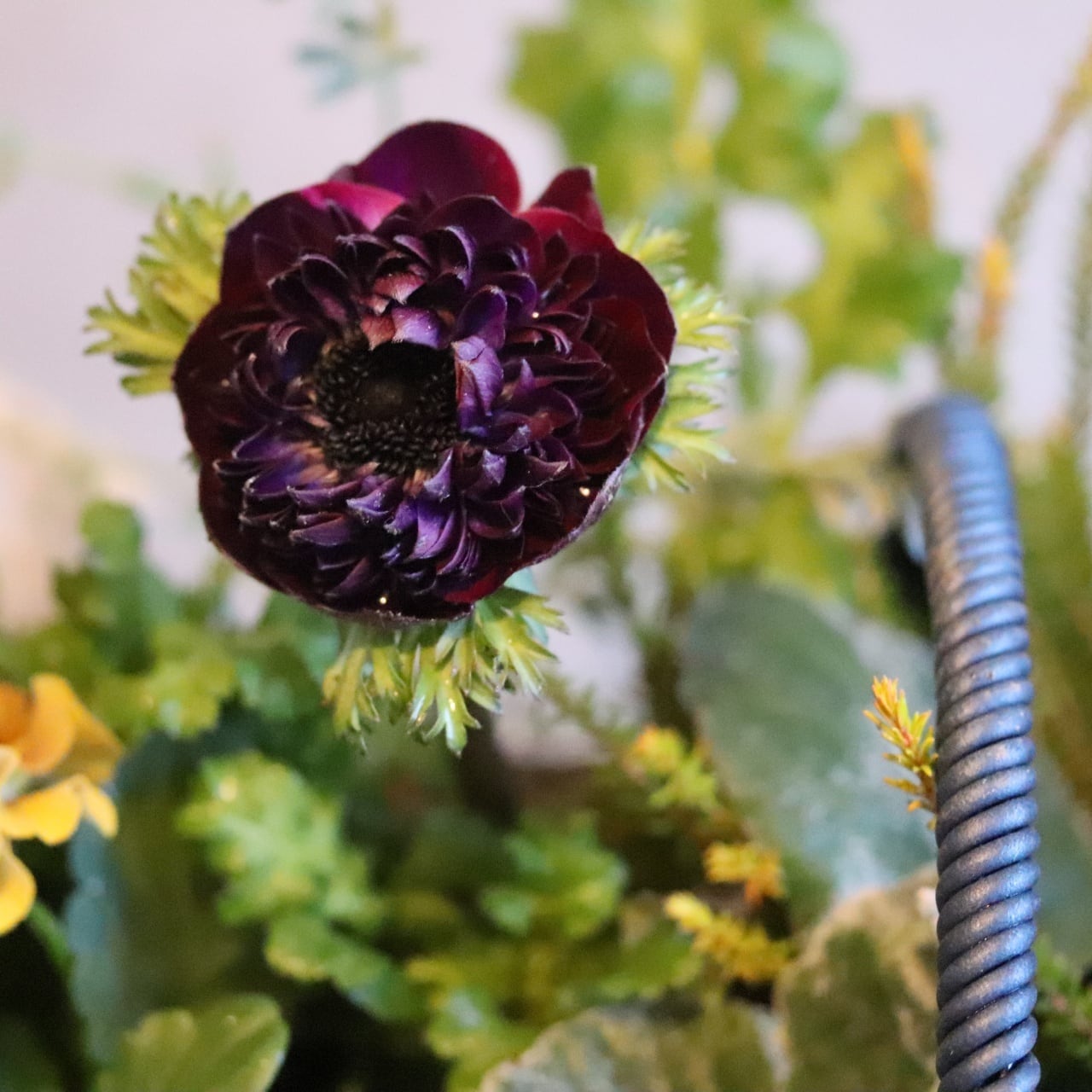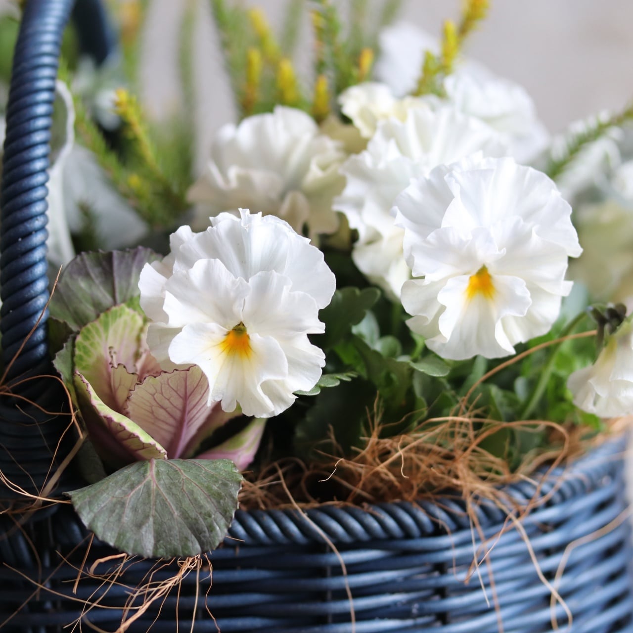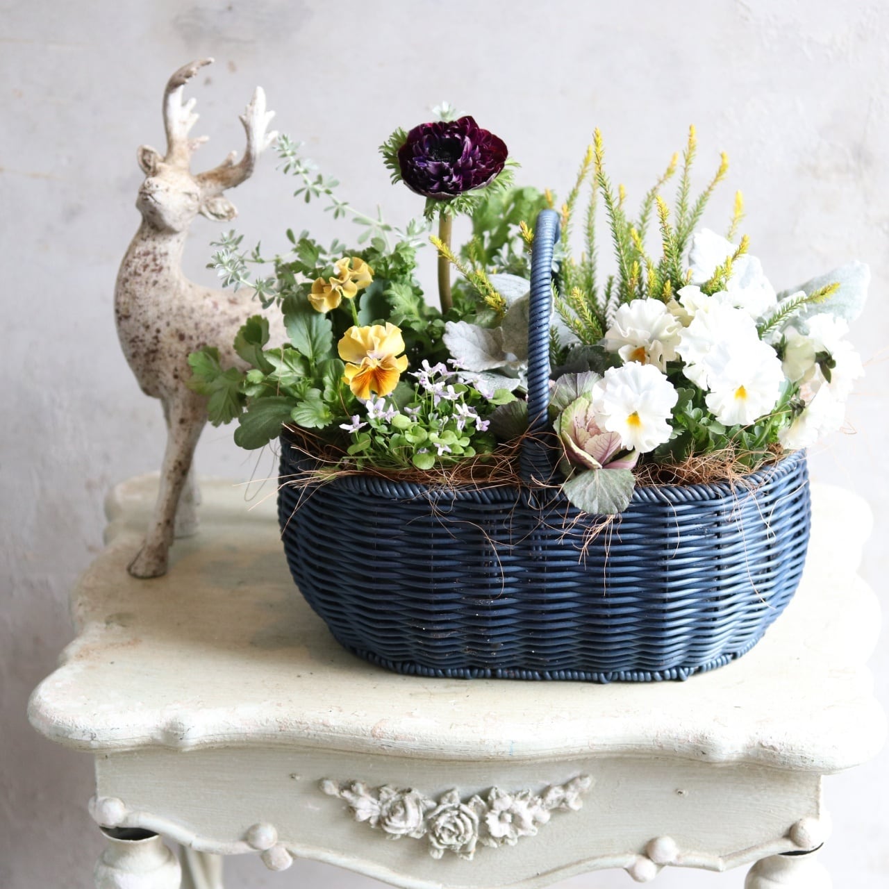 冬から春に楽しむ寄せ植え アネモネファネモスとビオラの春まで綺麗なバスケットの寄せ植え お正月にオススメ 届いてすぐ玄関に飾れる プレゼントにもオススメ