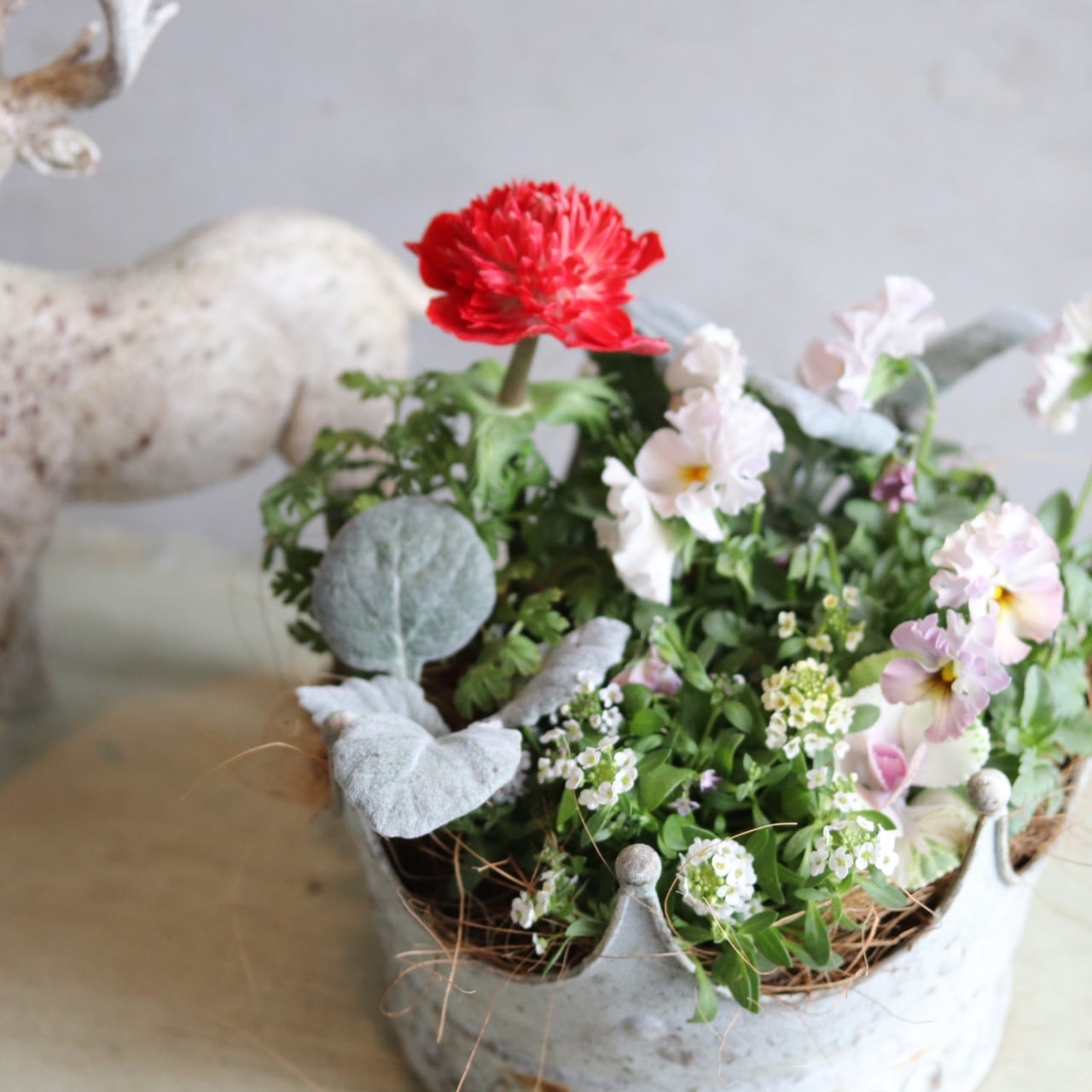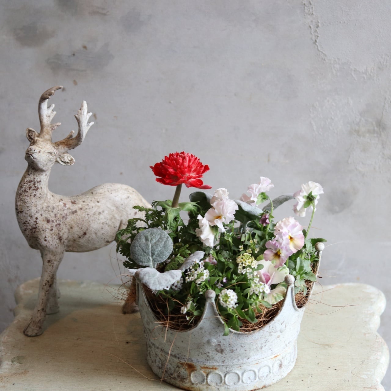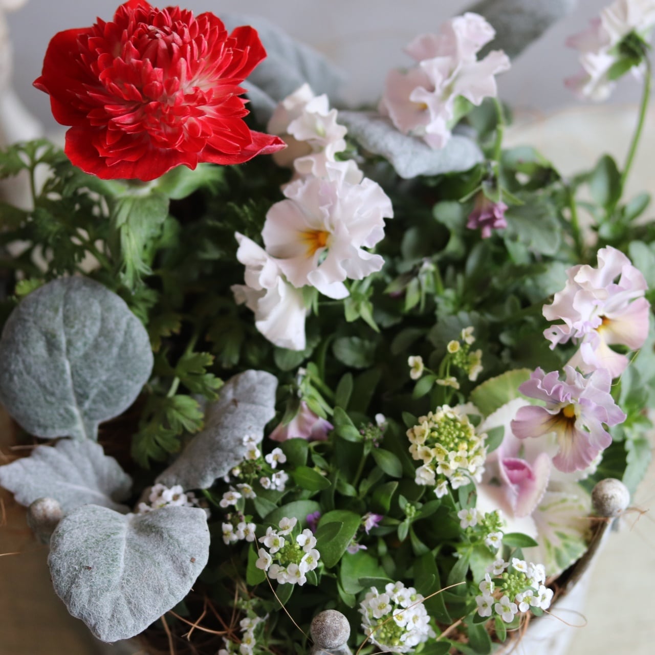 冬から春に楽しむ寄せ植え アネモネファネモスレッドのシャビーなクラウンカップの寄せ植え お正月にオススメ 届いてすぐ玄関に飾れる プレゼントにもオススメ
