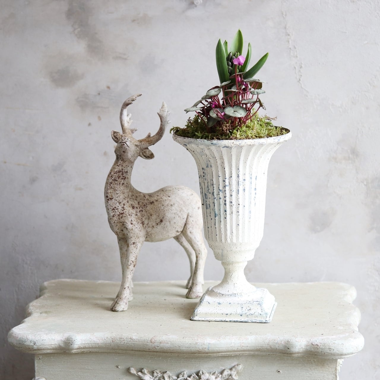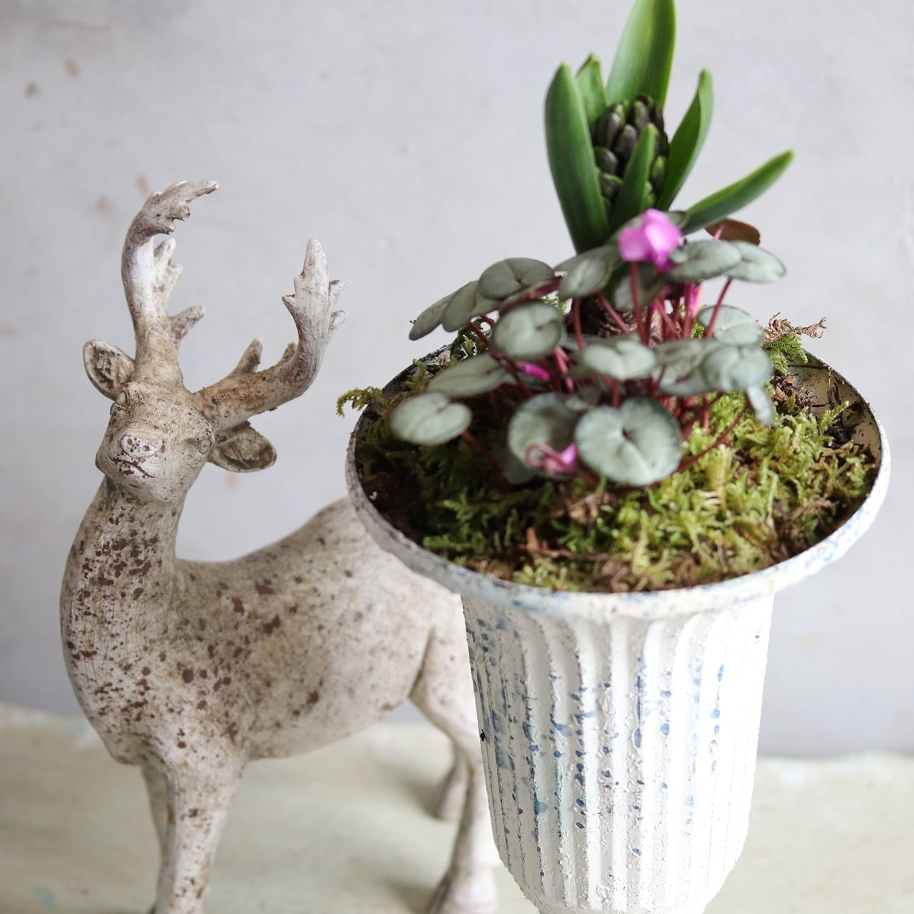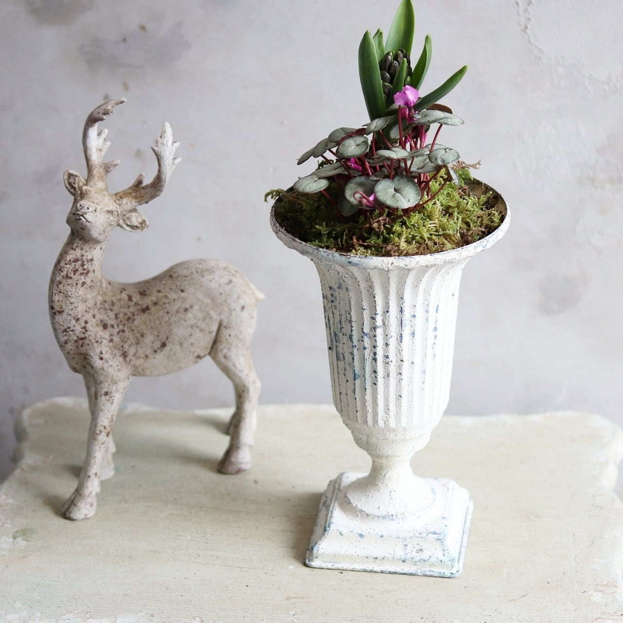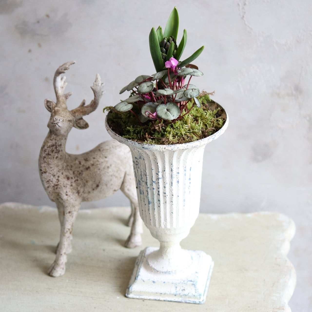 球根を楽しむ寄せ植え シャビーシックな球根ペアカップの寄せ植え お玄関にオススメ 届いてすぐ玄関に飾れる プレゼントにもオススメ
