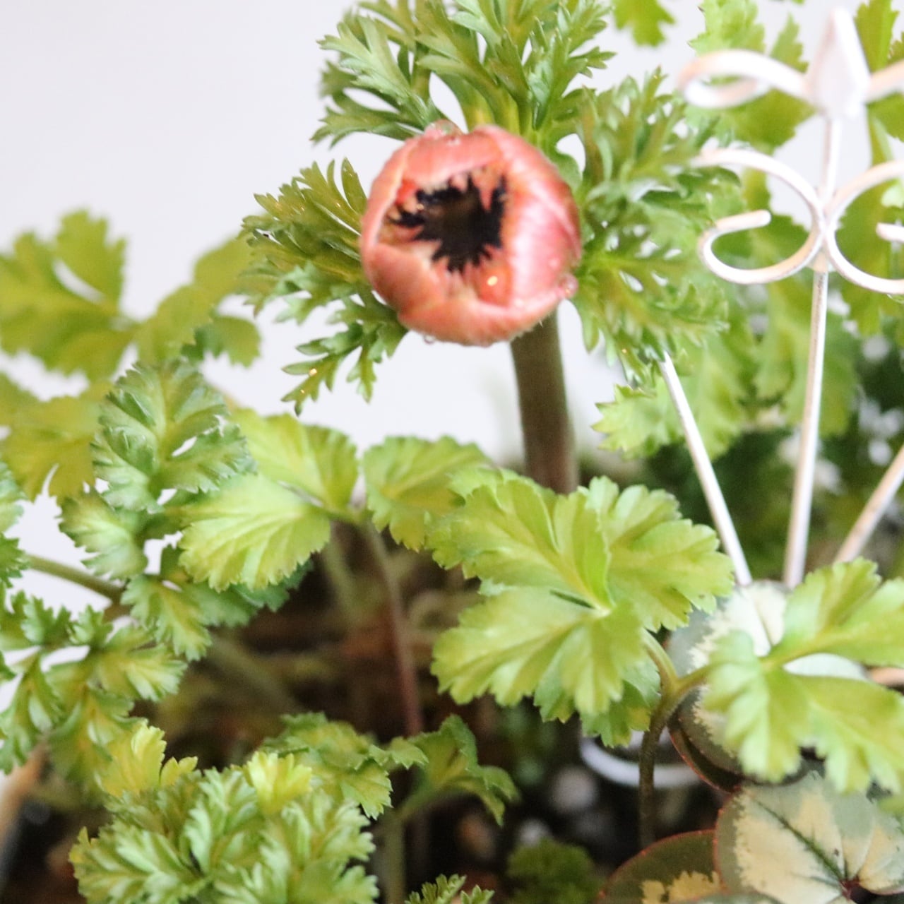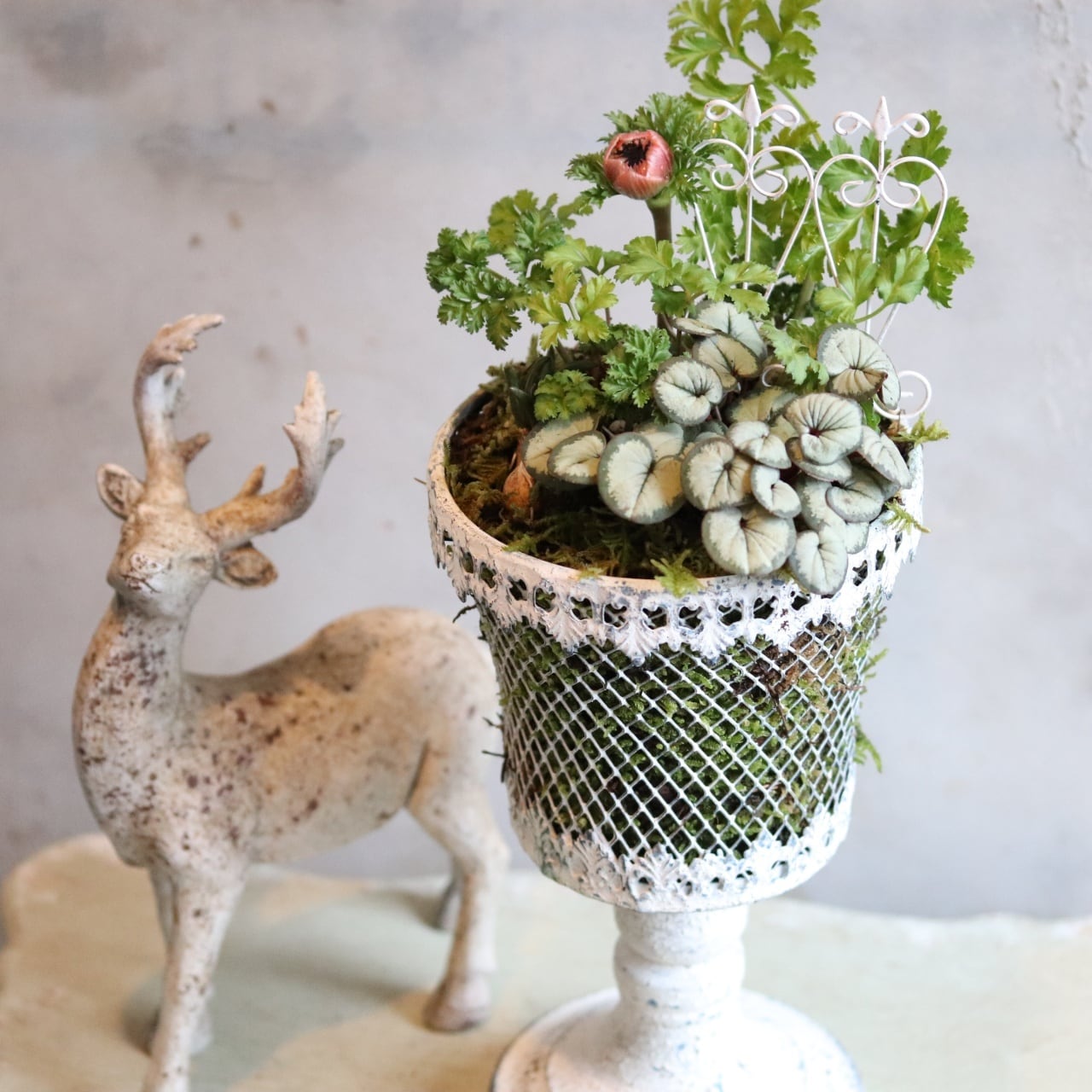 ajさま専用:球根を楽しむ寄せ植え シャビーなコケワイヤーポットアネモネピンクの寄せ植え