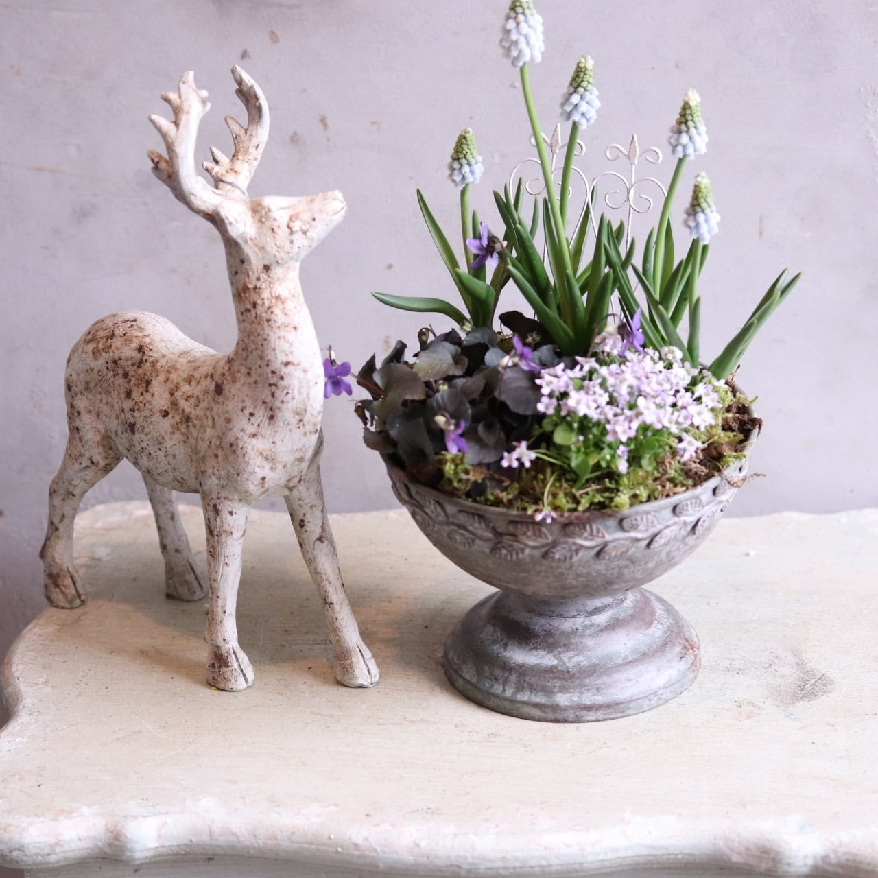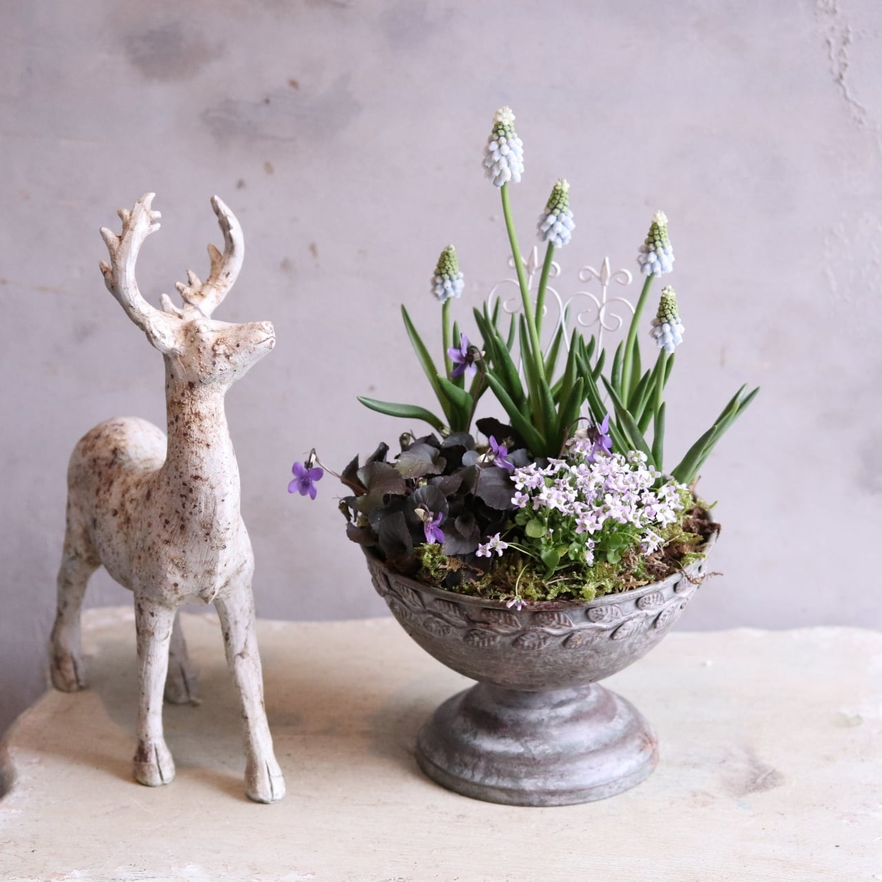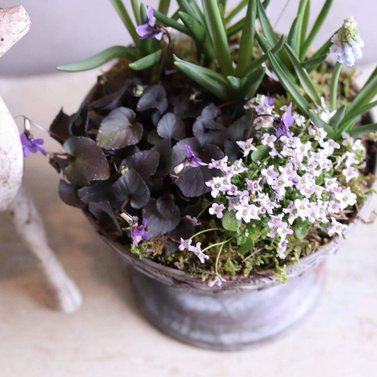 ムスカリ&スミレのムラサキカップ 寄せ植え 届いてすぐ玄関に飾れる プレゼントにもオススメ