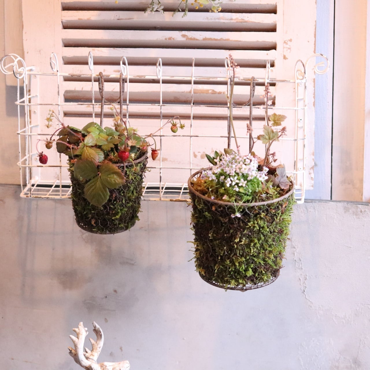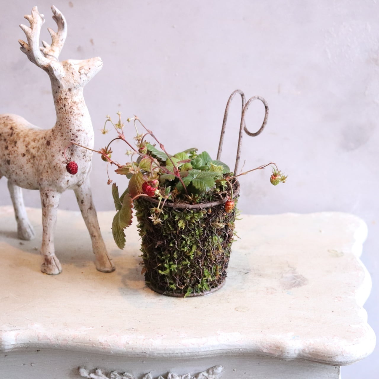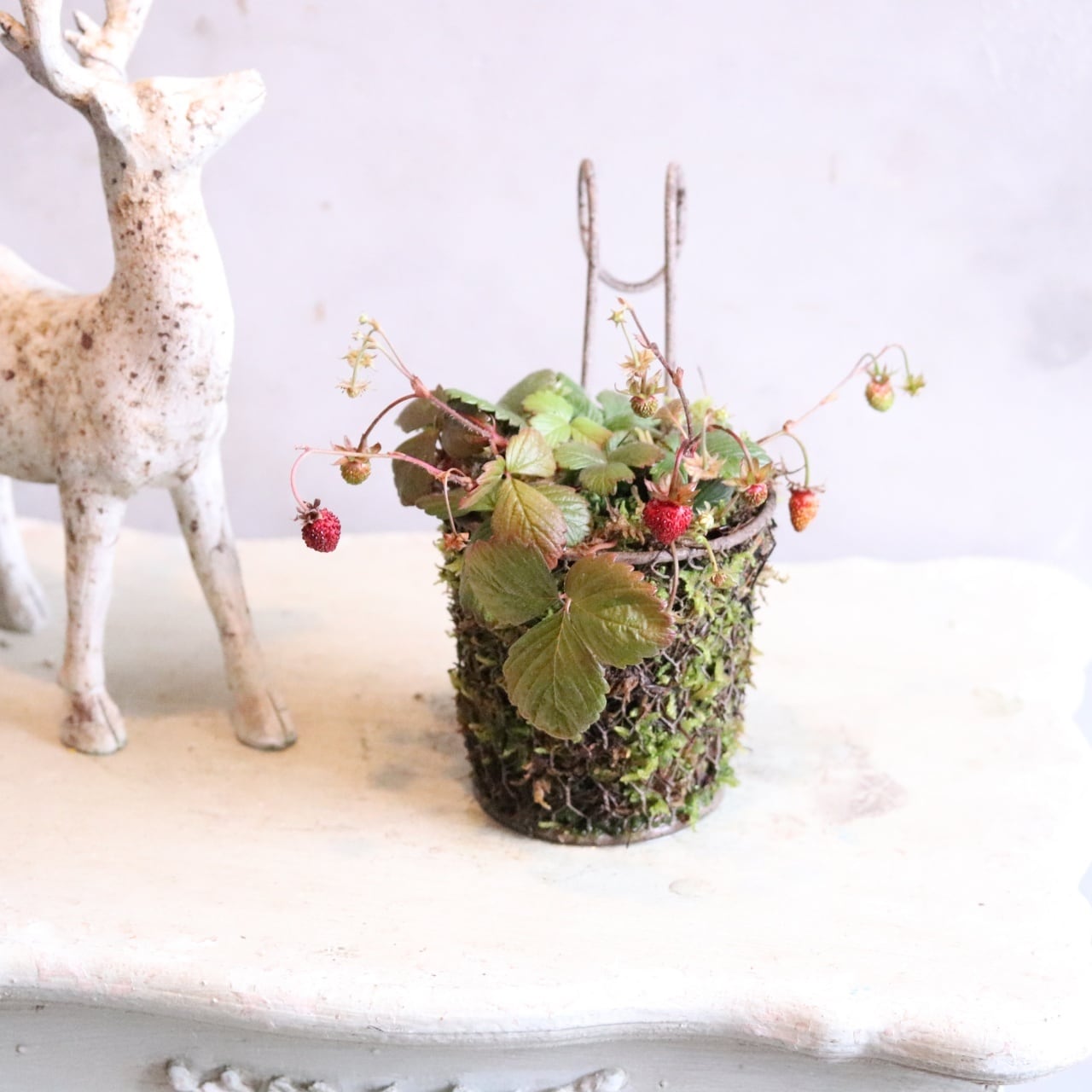 ワイルドストロベリーコケハング 寄せ植え 届いてすぐ玄関に飾れる プレゼントにもオススメ