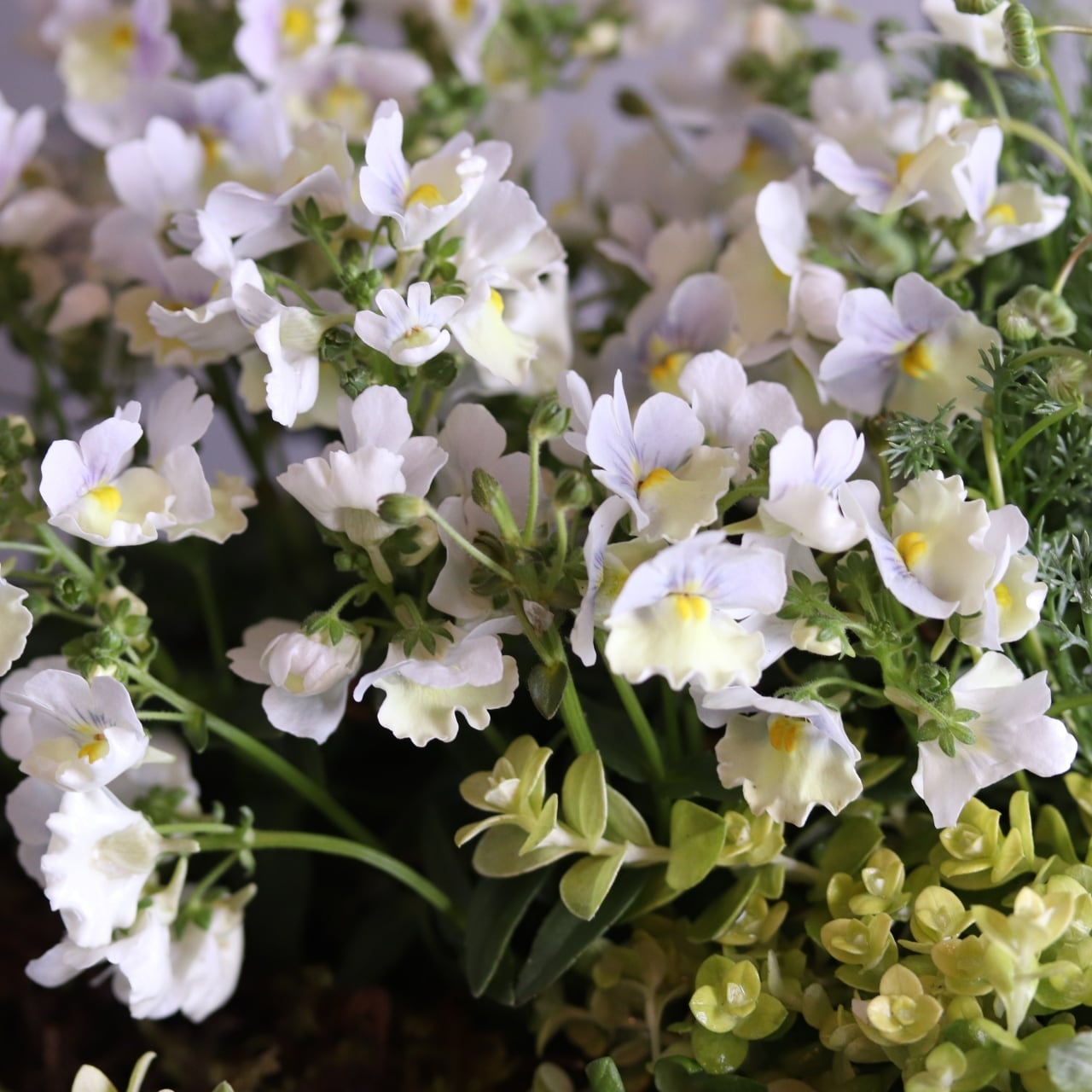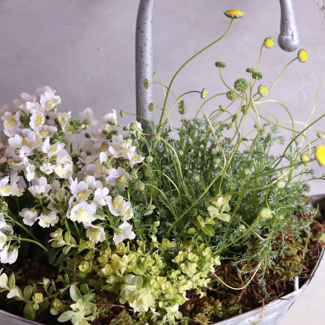 ネメシアは多年草で、ヘリクリサムも植えたままで楽しめます