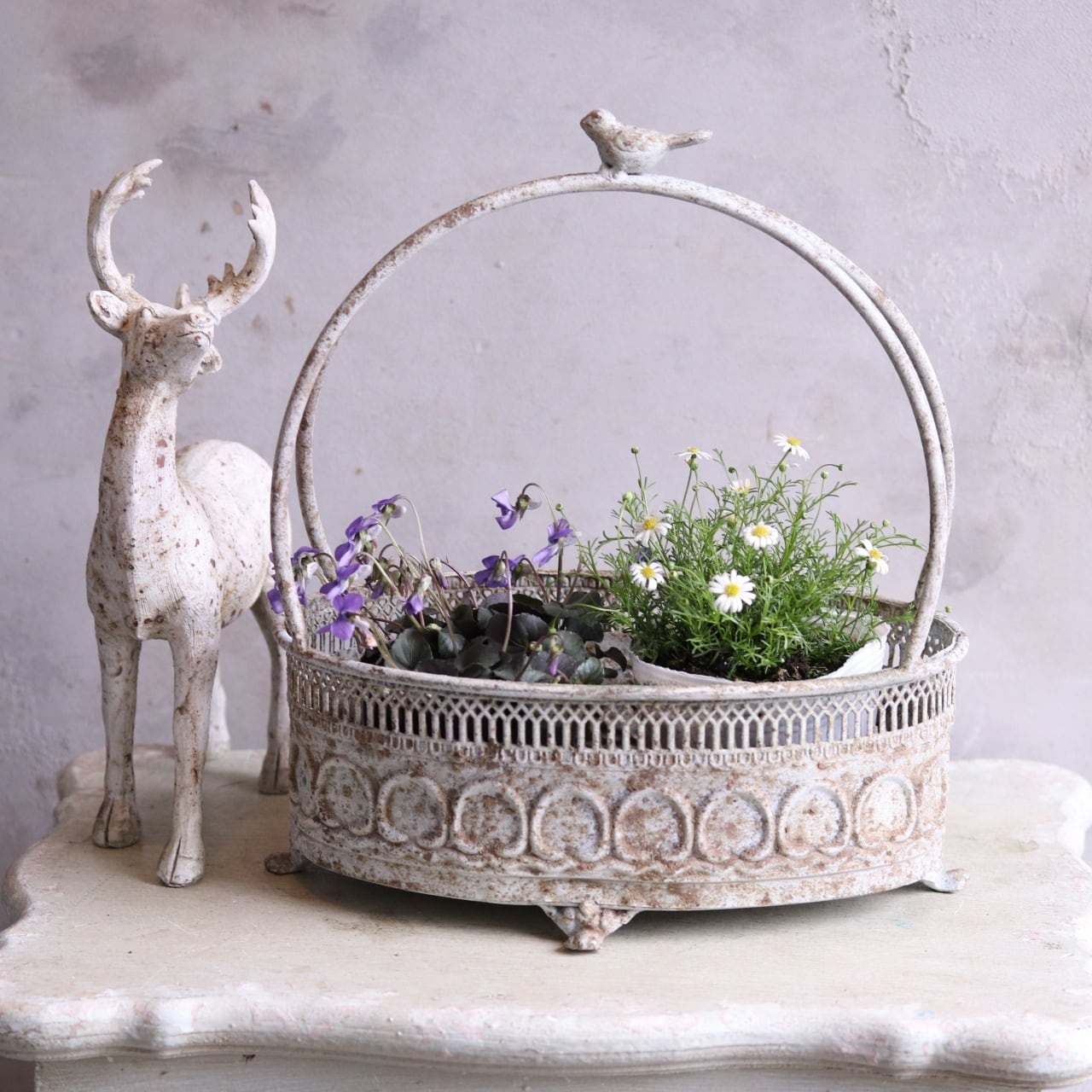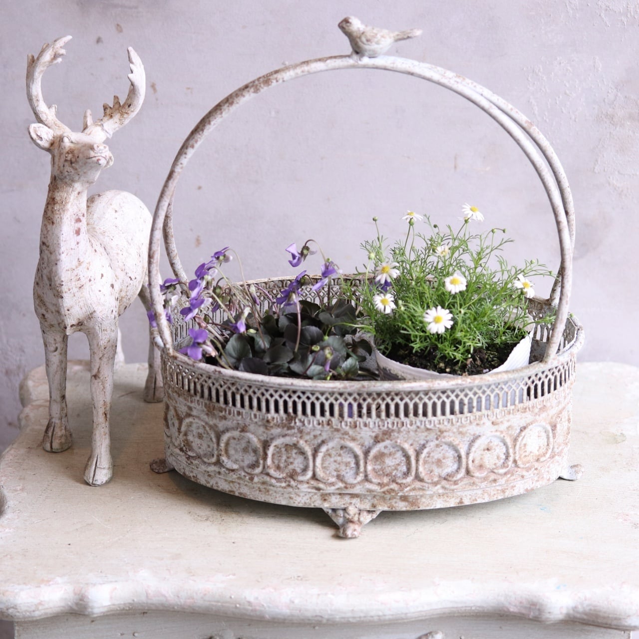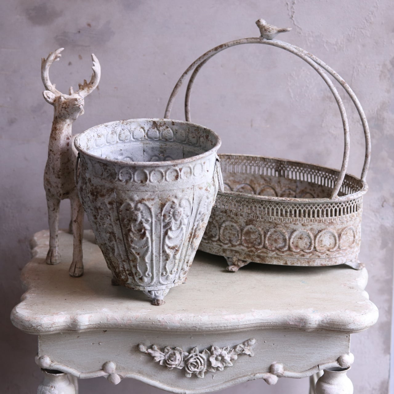 ブリキ植木鉢 ジャンヌハンドルポットW A アンティーク調 シャビーシック オシャレ JG 39