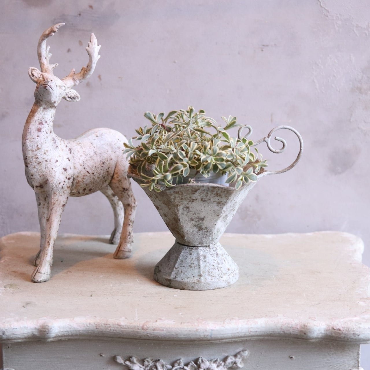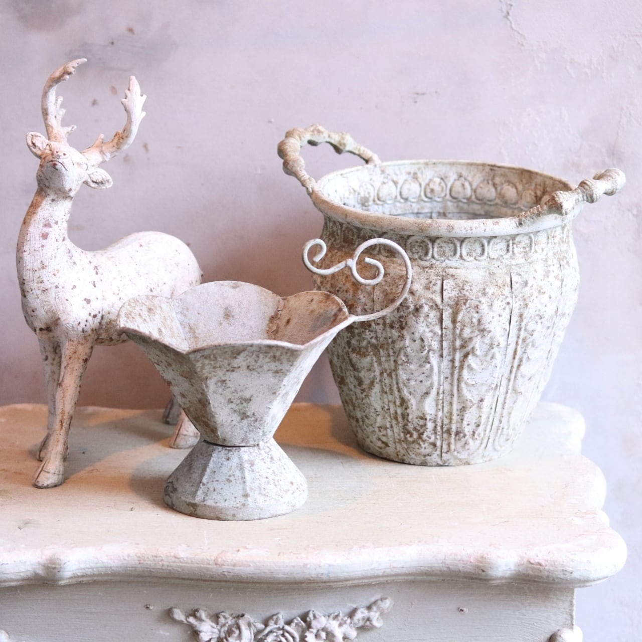 mondimanche 植木鉢 アンティクカップMW UF614|シャビーシック 1ポットを植えてカワイイ 脚付き 飾りやすいサイズ感