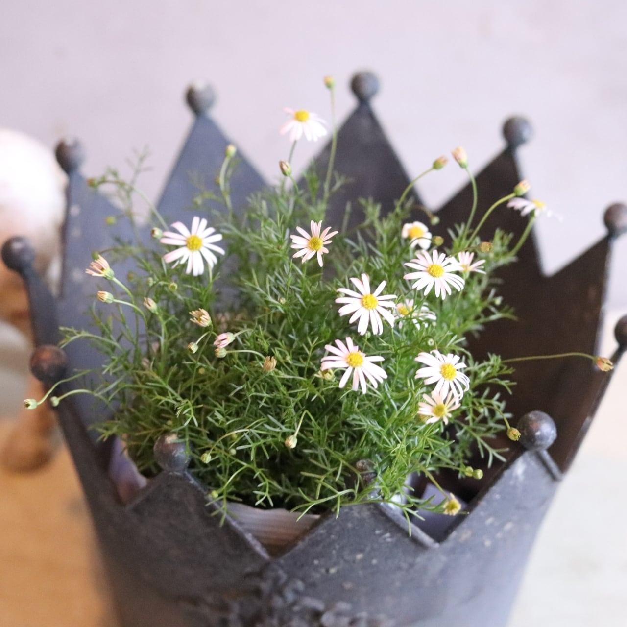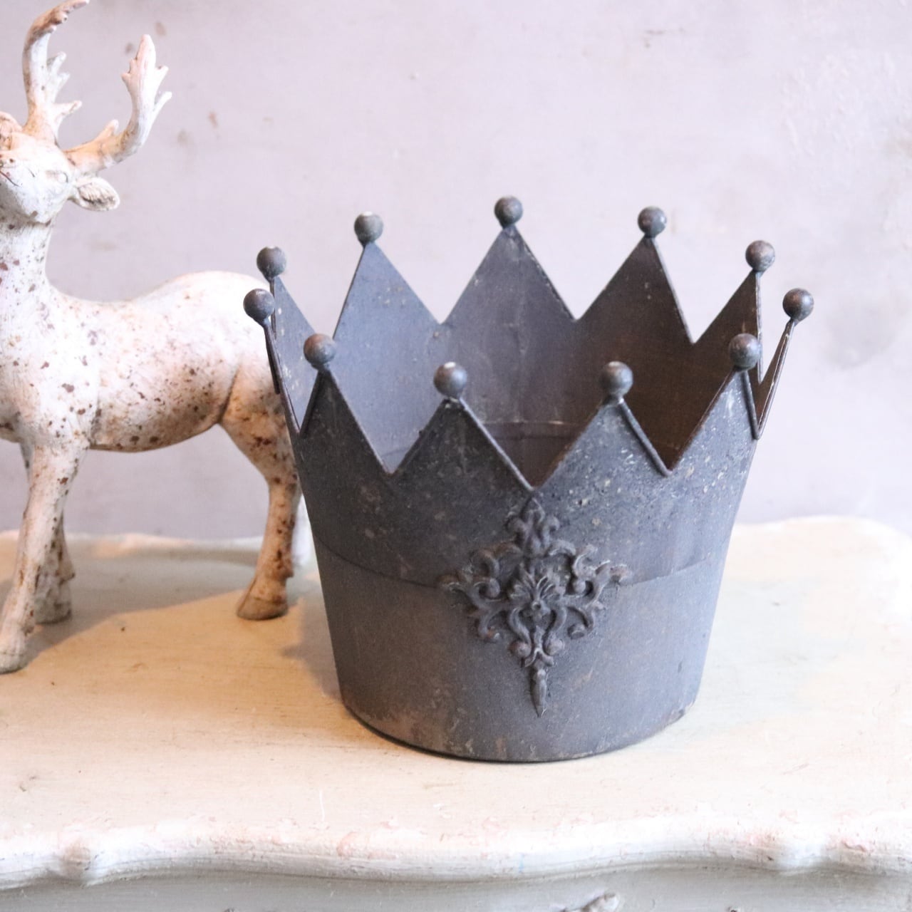 シャビーなクラウンデザインのブリキポット