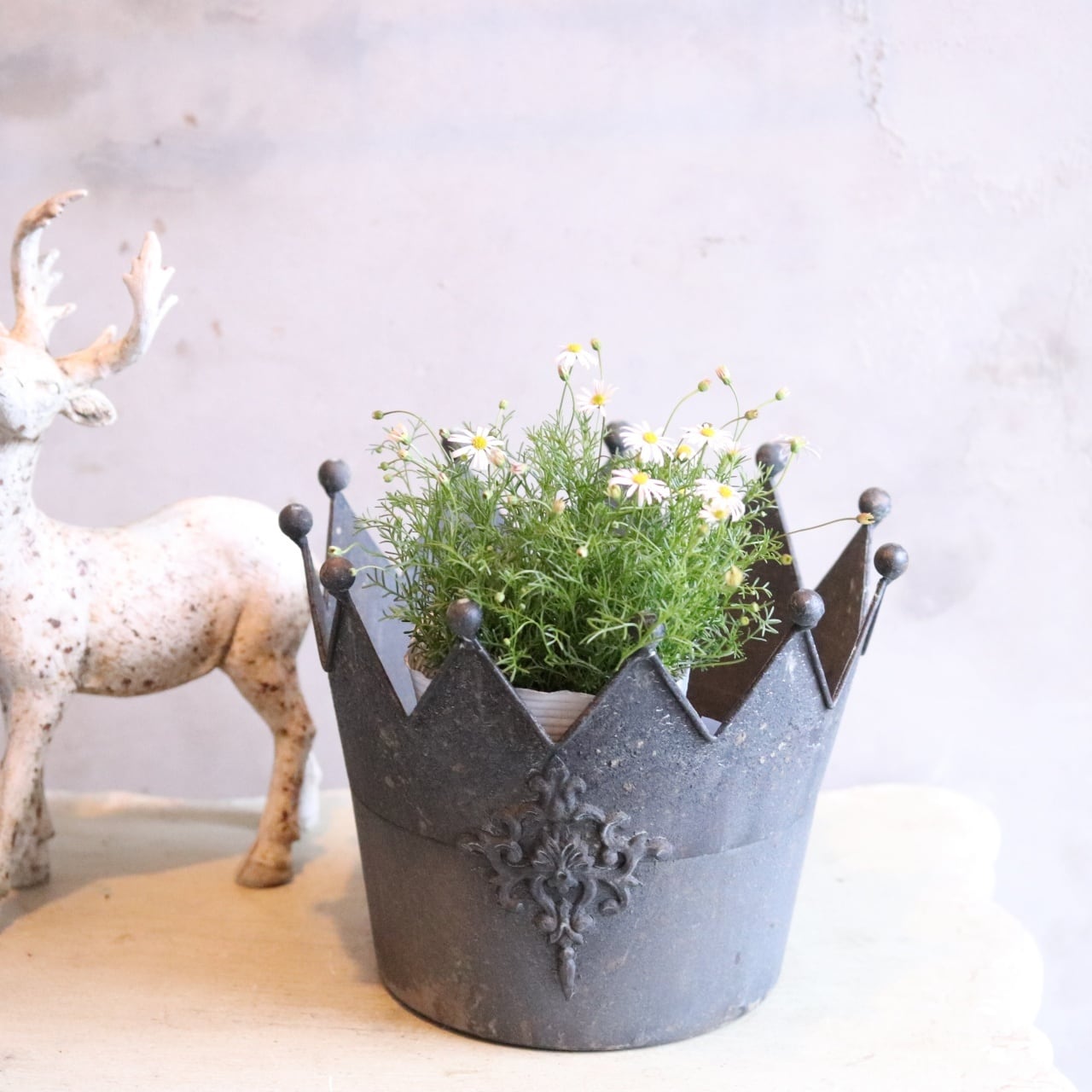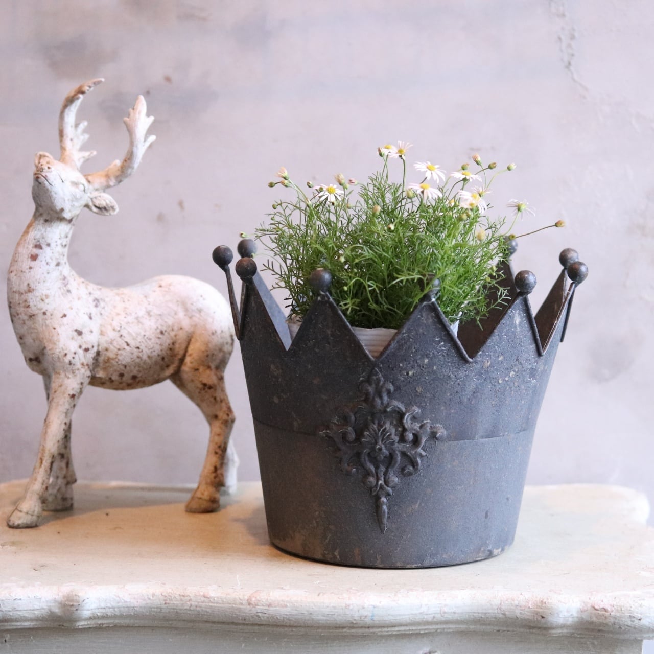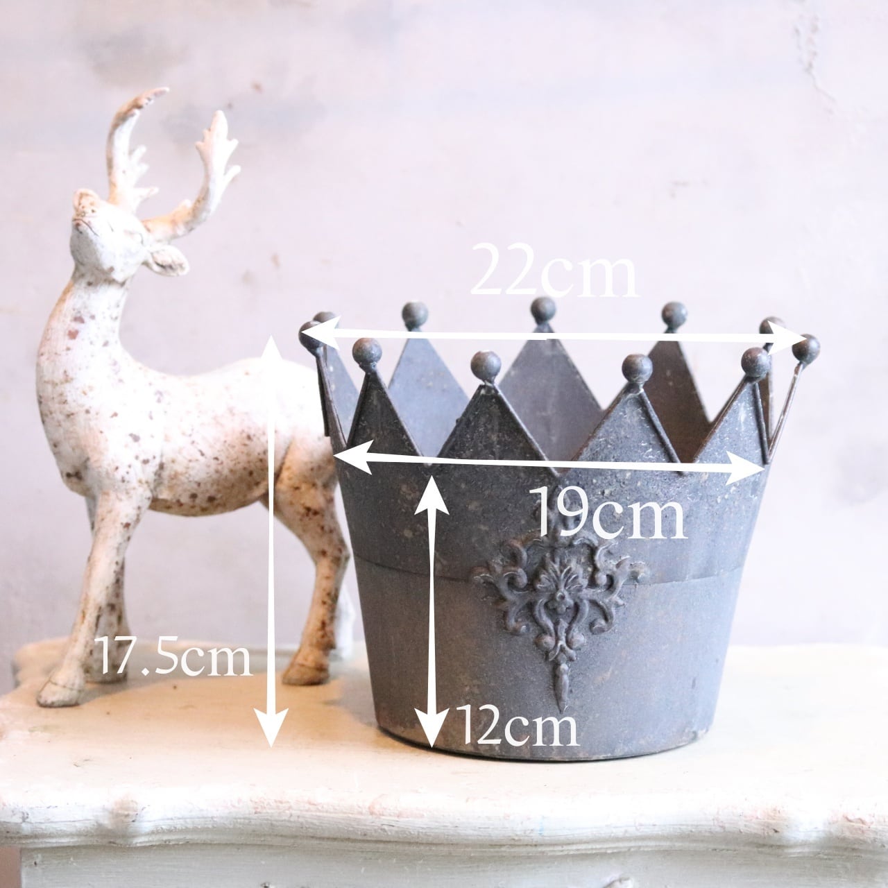 mondimanche 植木鉢 クローヌポットMDGY|シャビーシック 王冠デザインでお花とよく合う UF 624