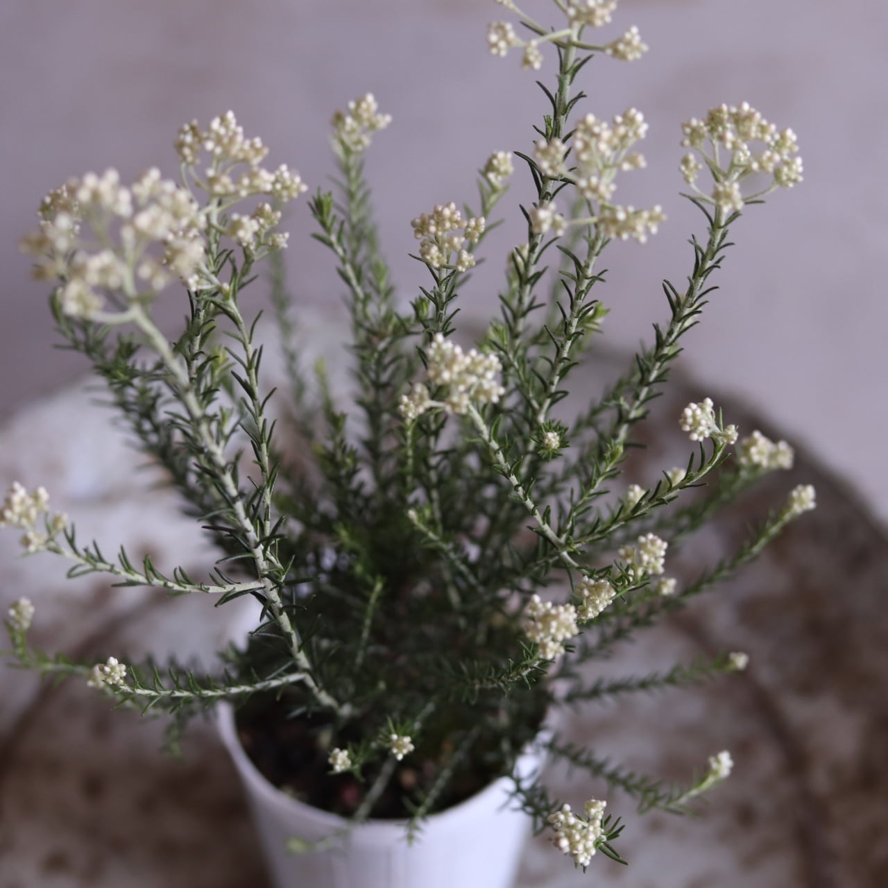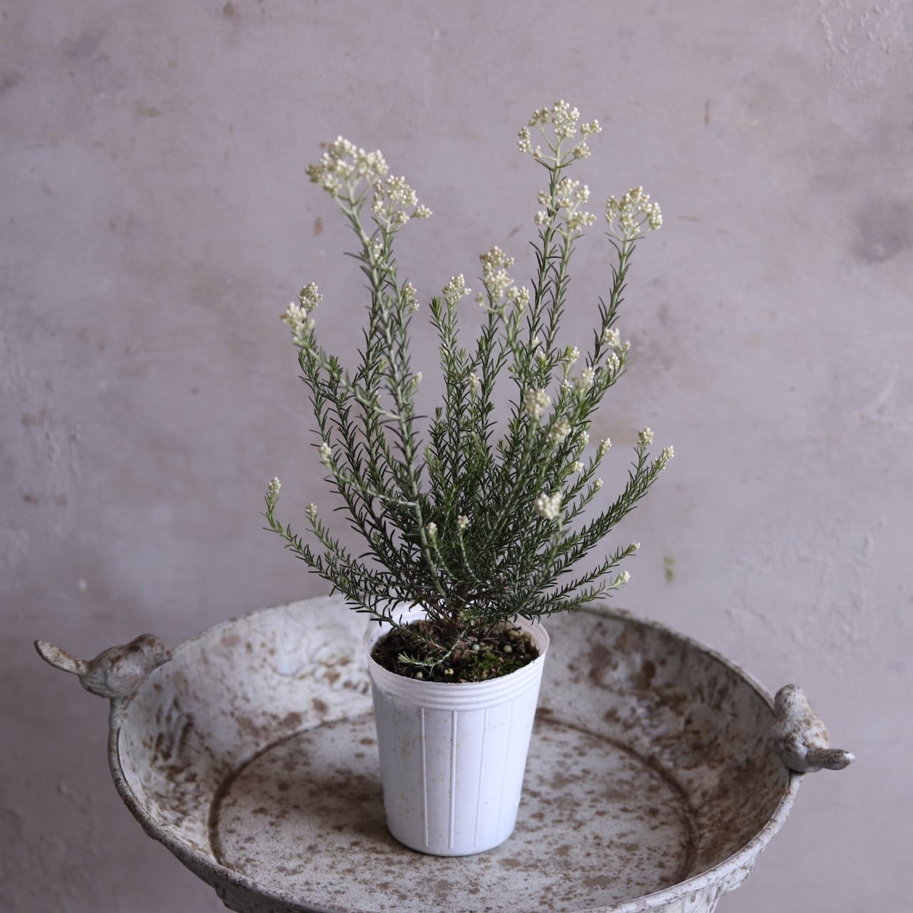 粒々のお花がお米みたいな低木になるライスフラワーの苗木です