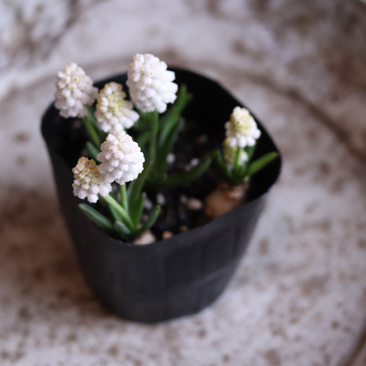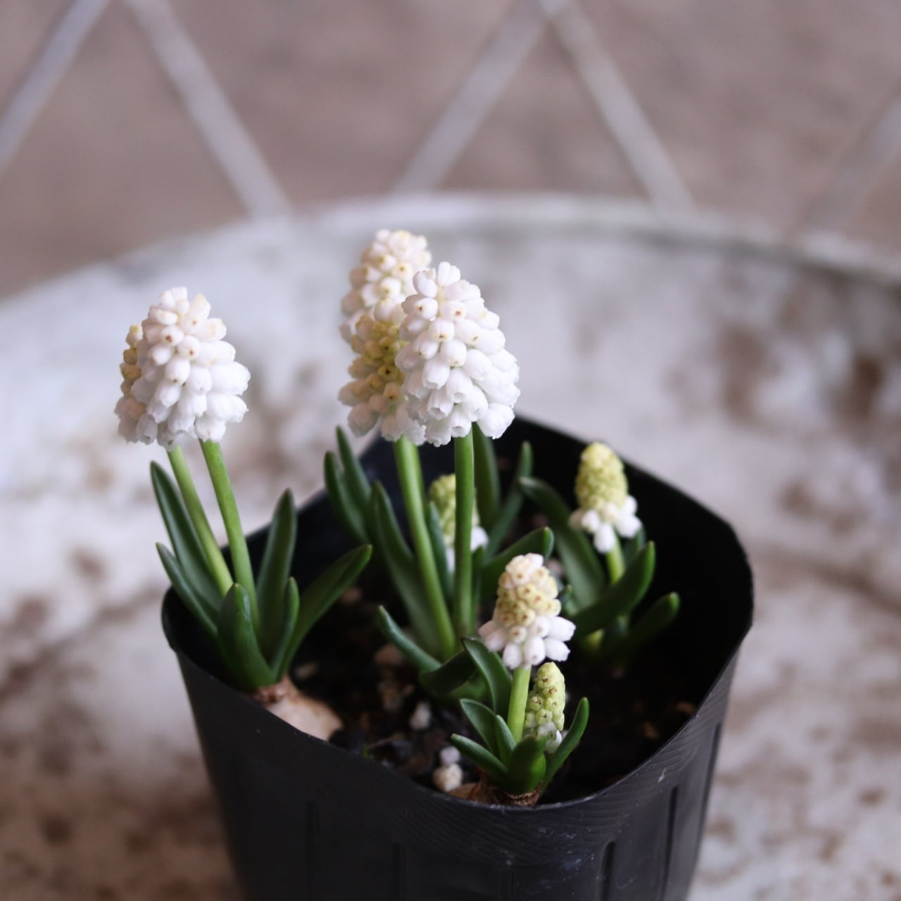 こちらは珍しい白いムスカリです