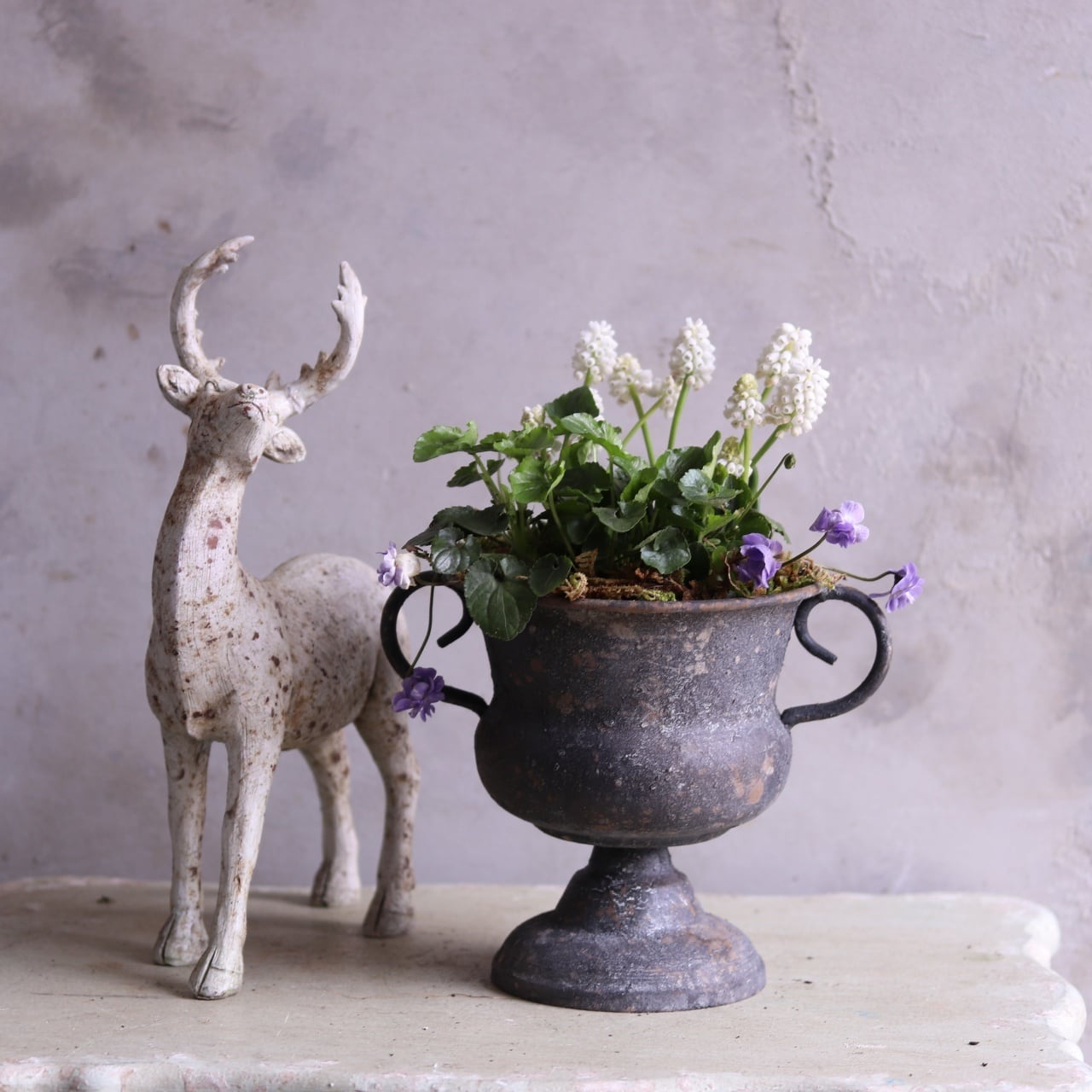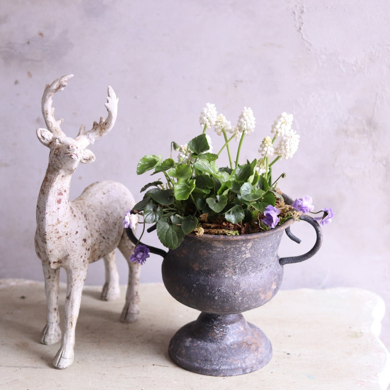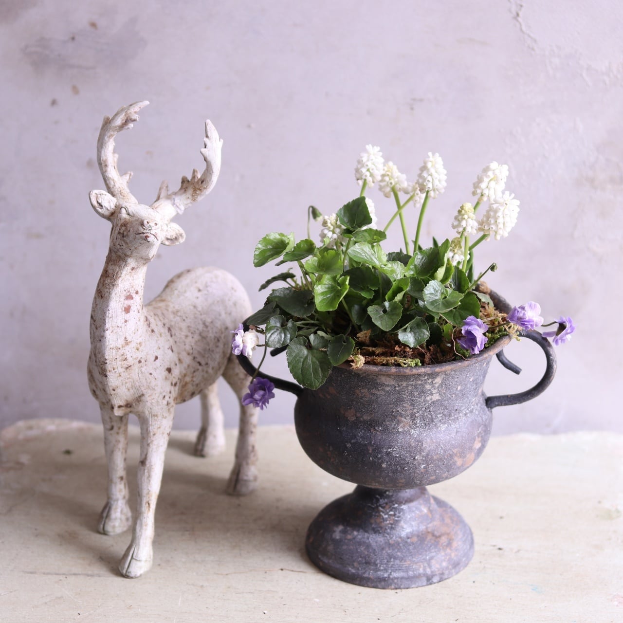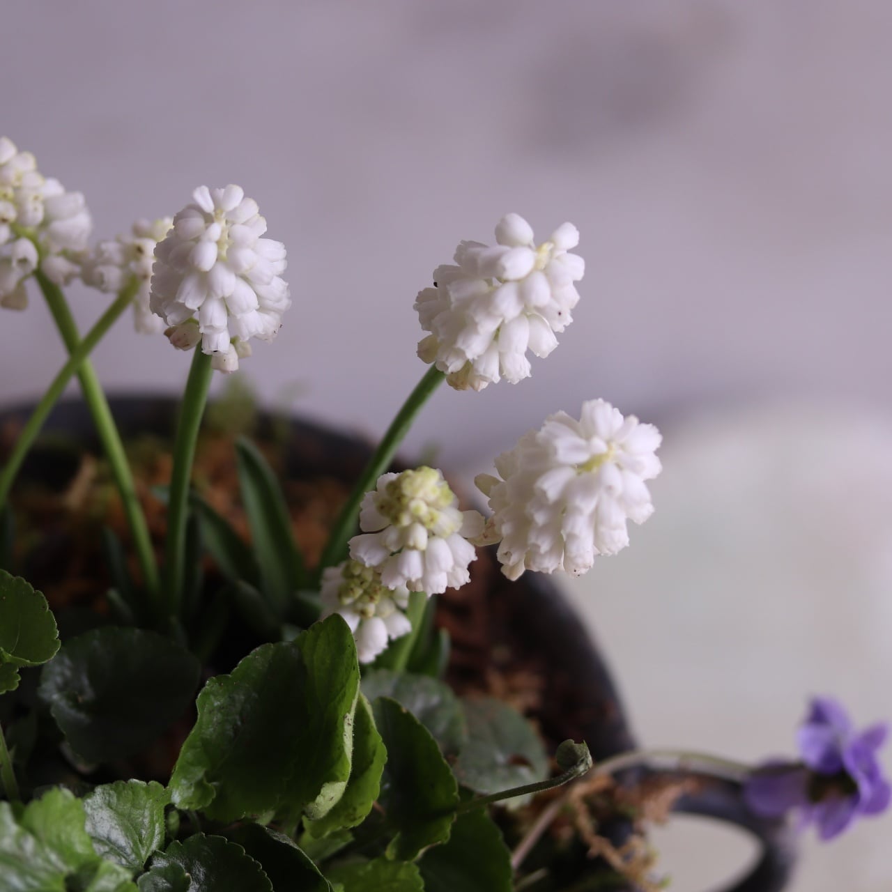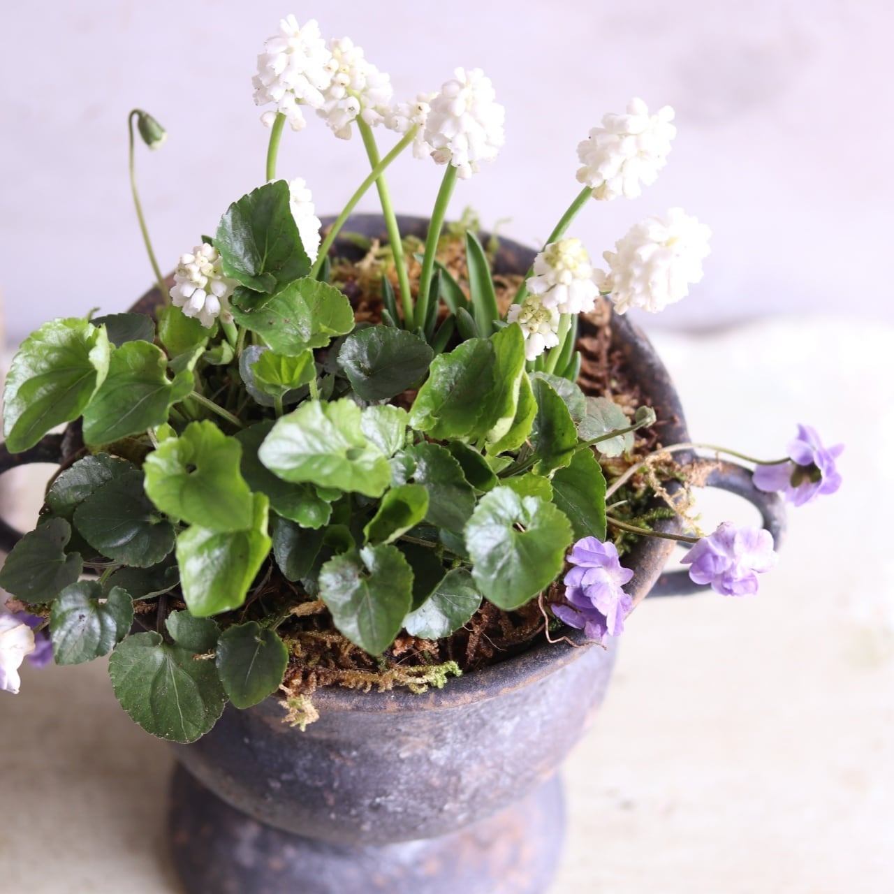 mondimanche 寄せ植え ムスカリとすみれのシャビーカップ|届いてすぐ玄関に飾れる プレゼントにもオススメ