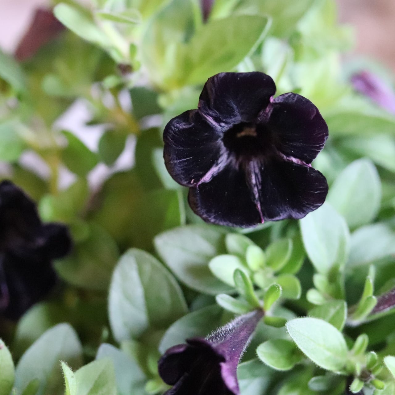 小さなお花でくろ〜黒紫の立ち生のペチュニア