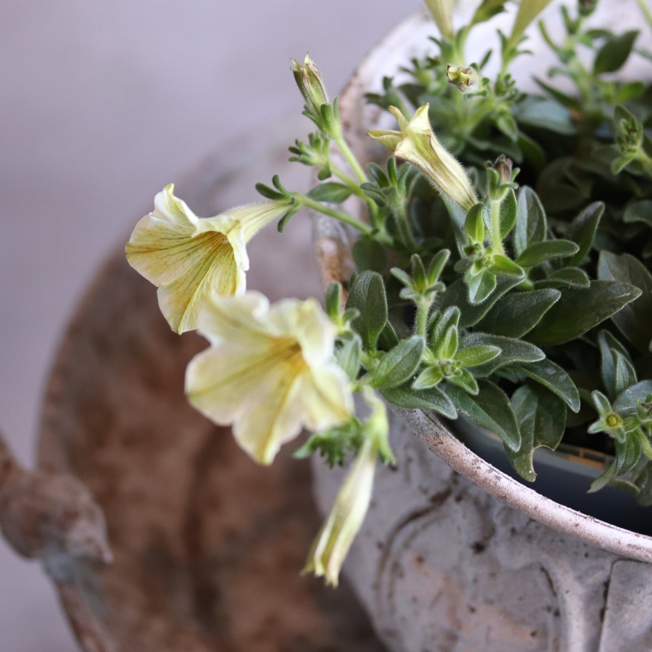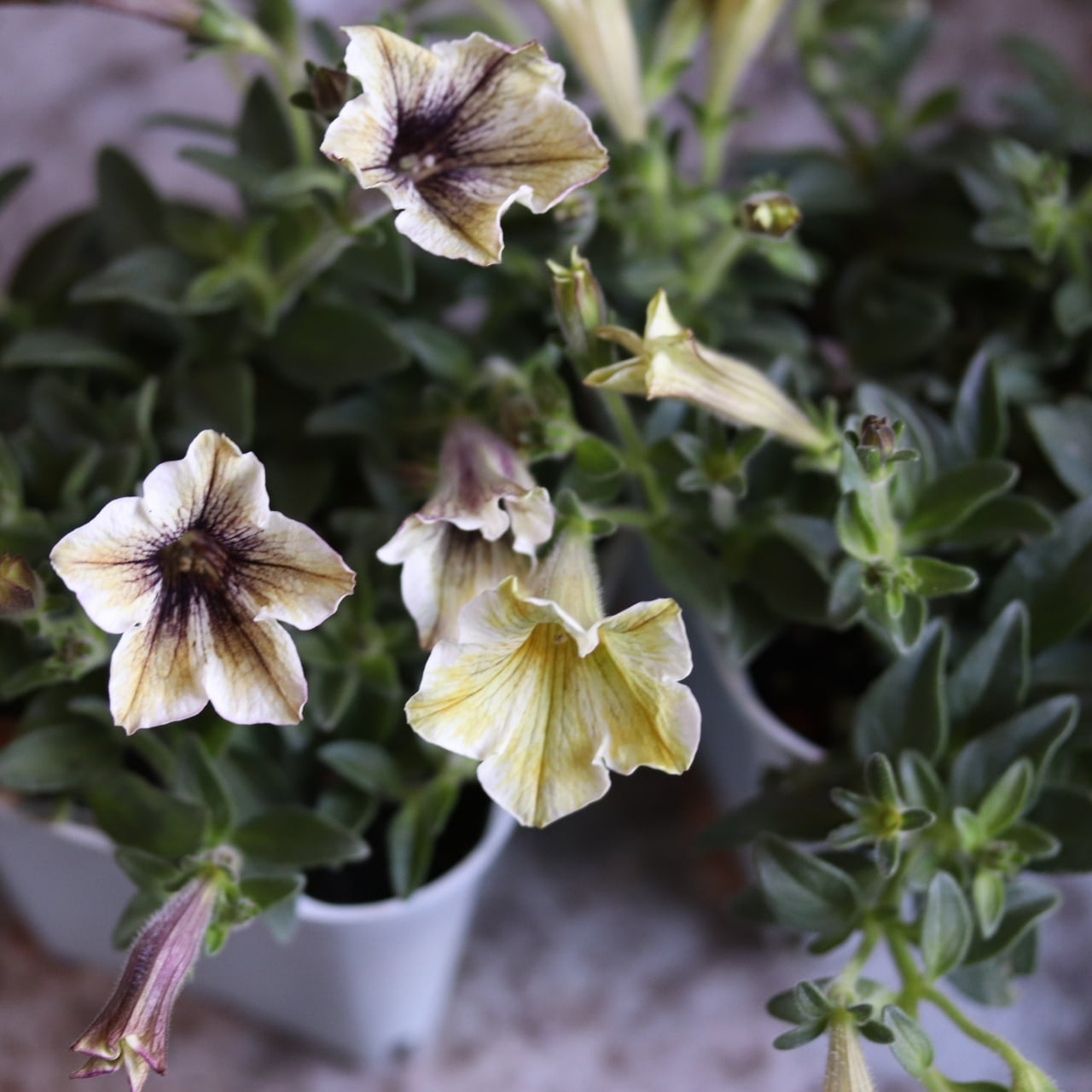 優しいクリームカラーのペチュニア。筋いりもありオシャレで