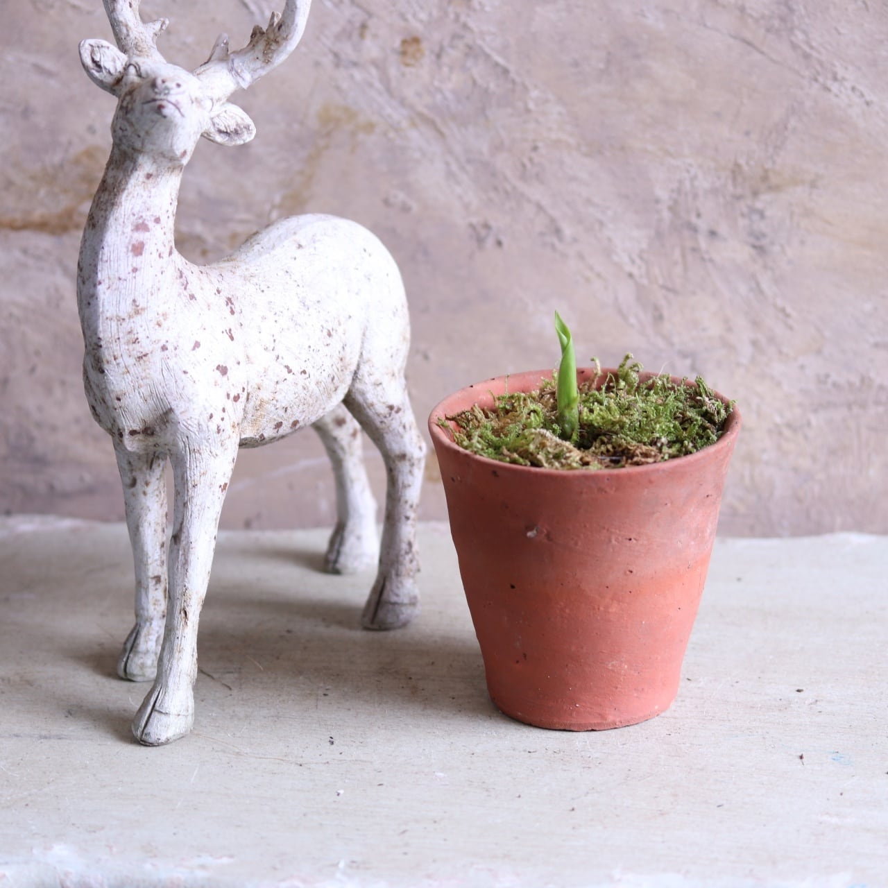 イギリスのアンティークの素焼きポットにスズラン1苗ゆっくりと・・