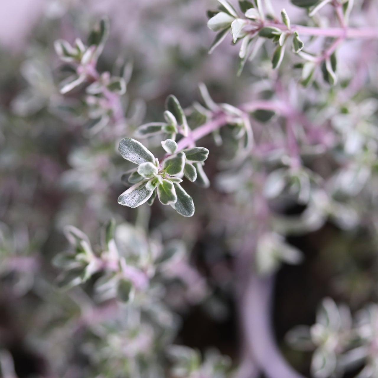 まるい葉にクリーム色の斑が入る鑑賞用の葡萄性のタイム。