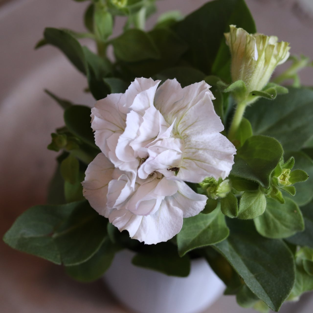 1ポットで25センチ位の鉢いっぱいに広がるペチュニア