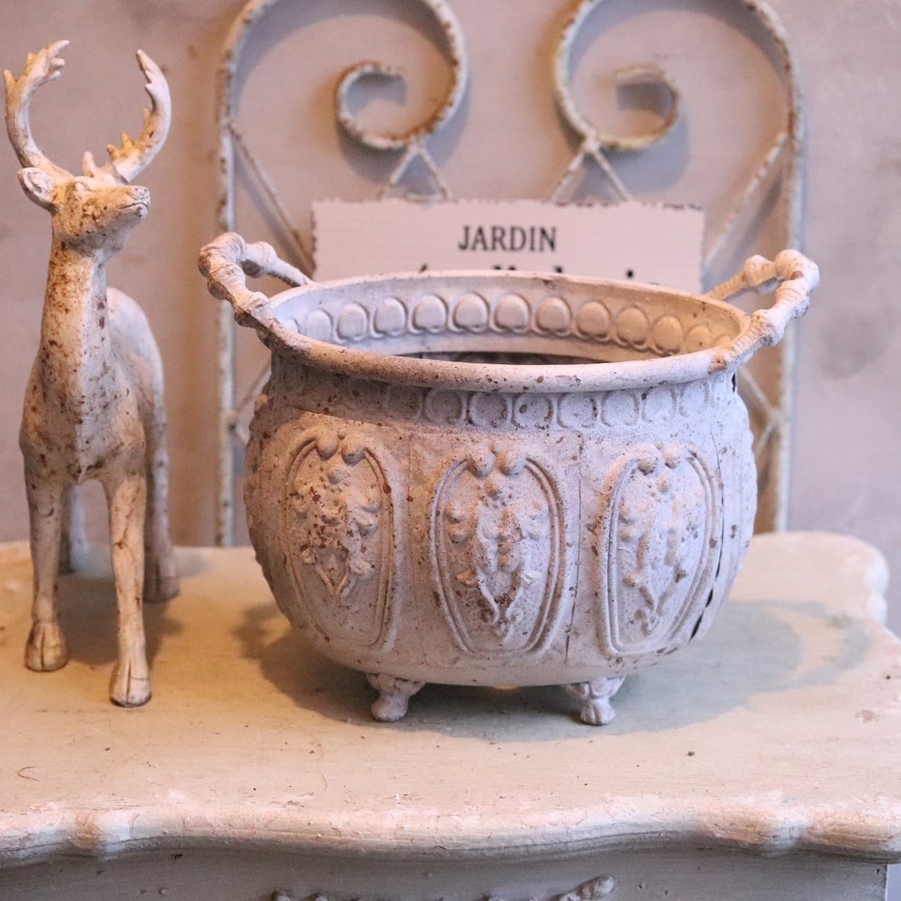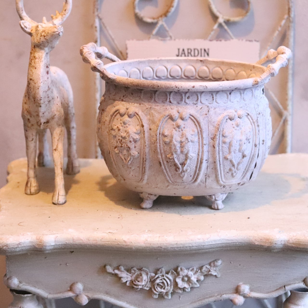 モンディマンシェ ブリキ植木鉢 アンシャンデコレオーバルSW|アンティーク調 シャビーシック オシャレ UF573