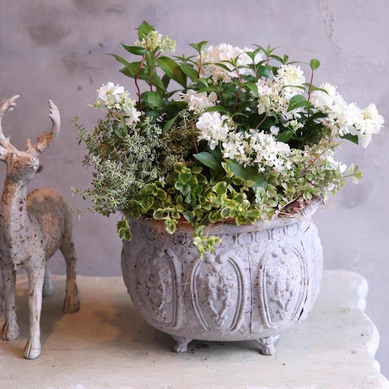 ブリキの植木鉢いろんなお花色に合わせやすく、寄せ植えにオススメ!