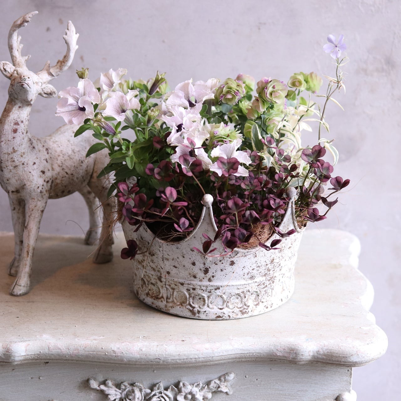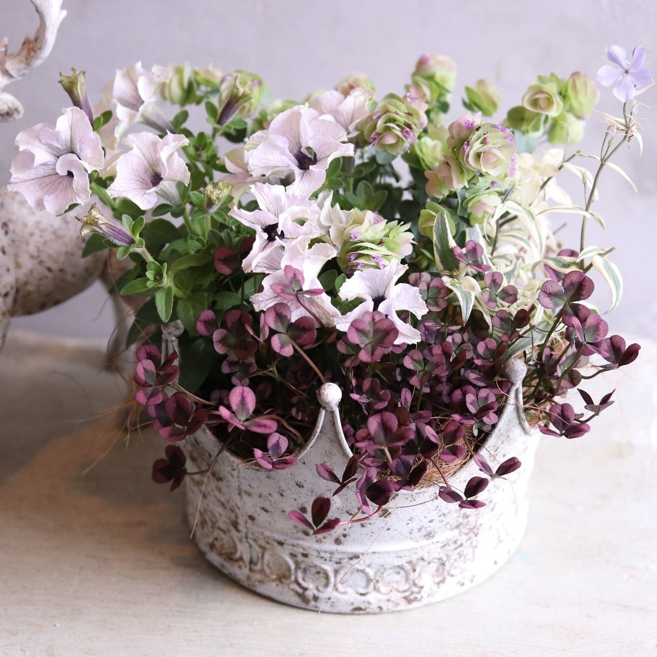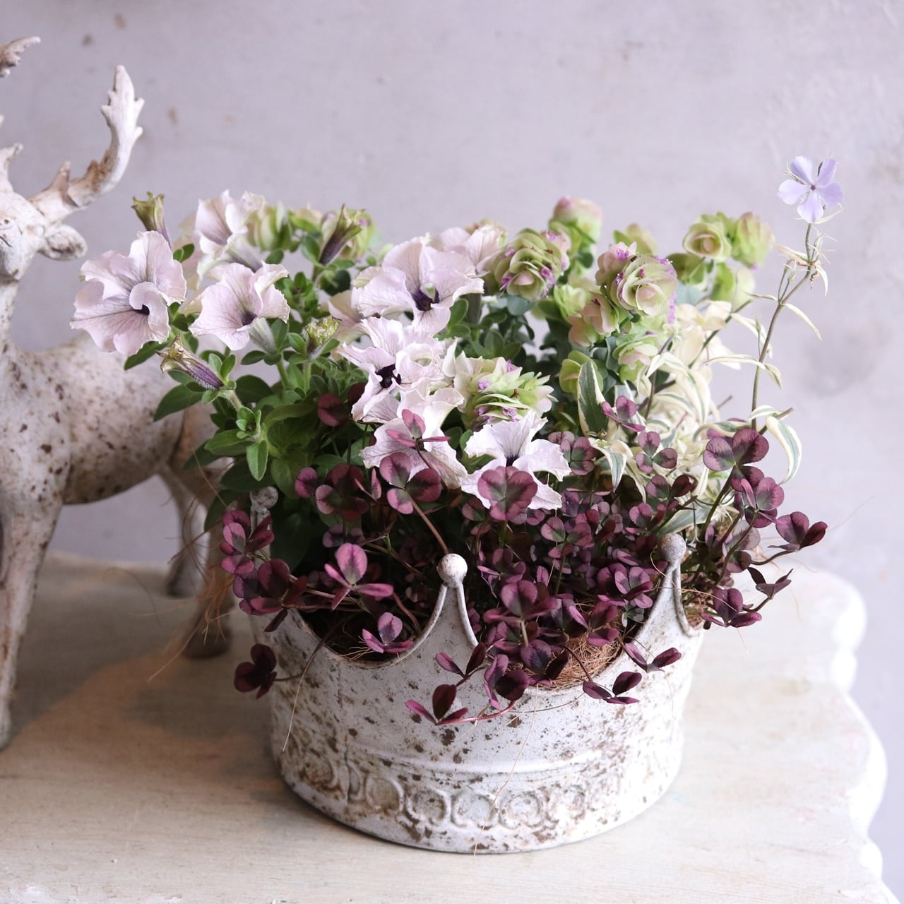 モンディマンシェ 寄せ植え プレゼントにおすすめ|クラウンポットのペチュニアシーウェーブ|届いてすぐ飾れる完成品|玄関インテリア|母の日・新築・開店祝いギフト