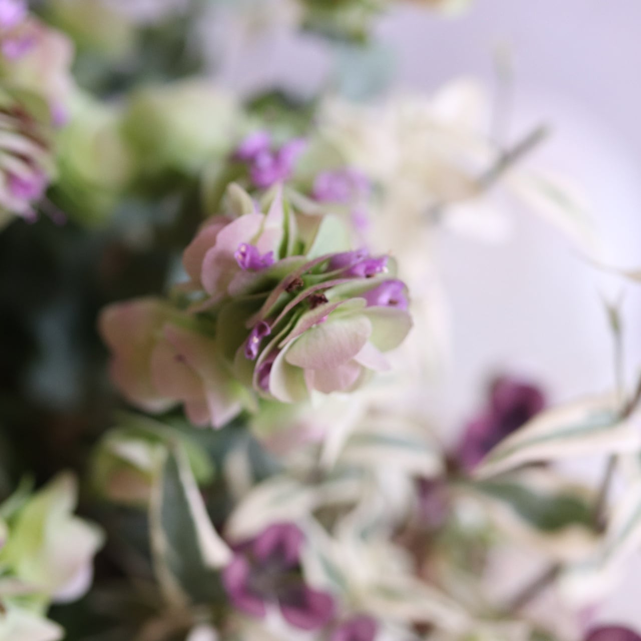 やわらかなシャーベットピンクとワインカラーのリーフを合わせた寄せ植えです。