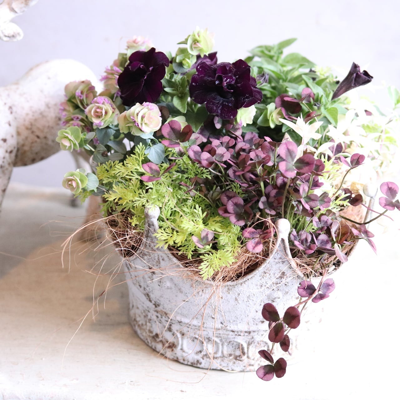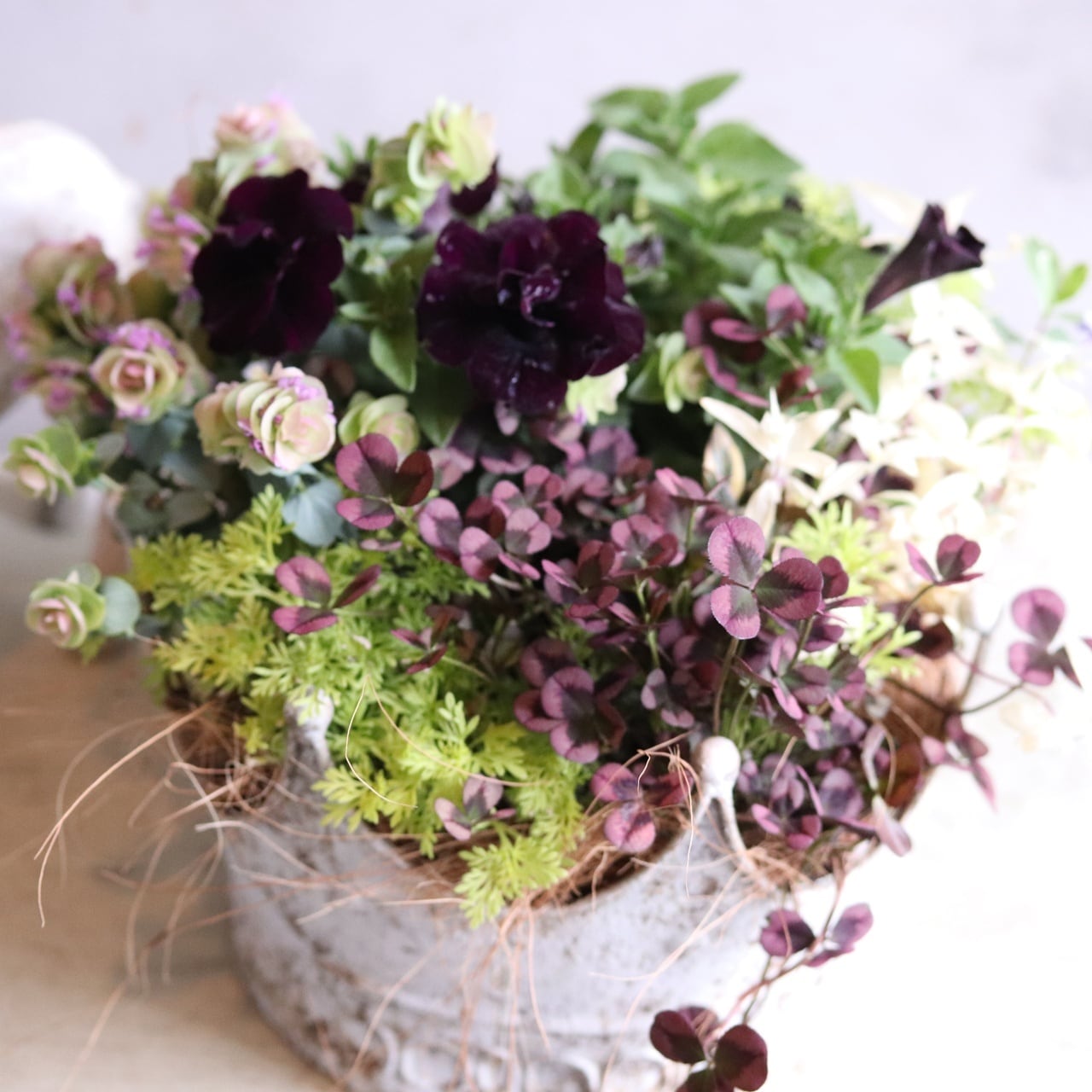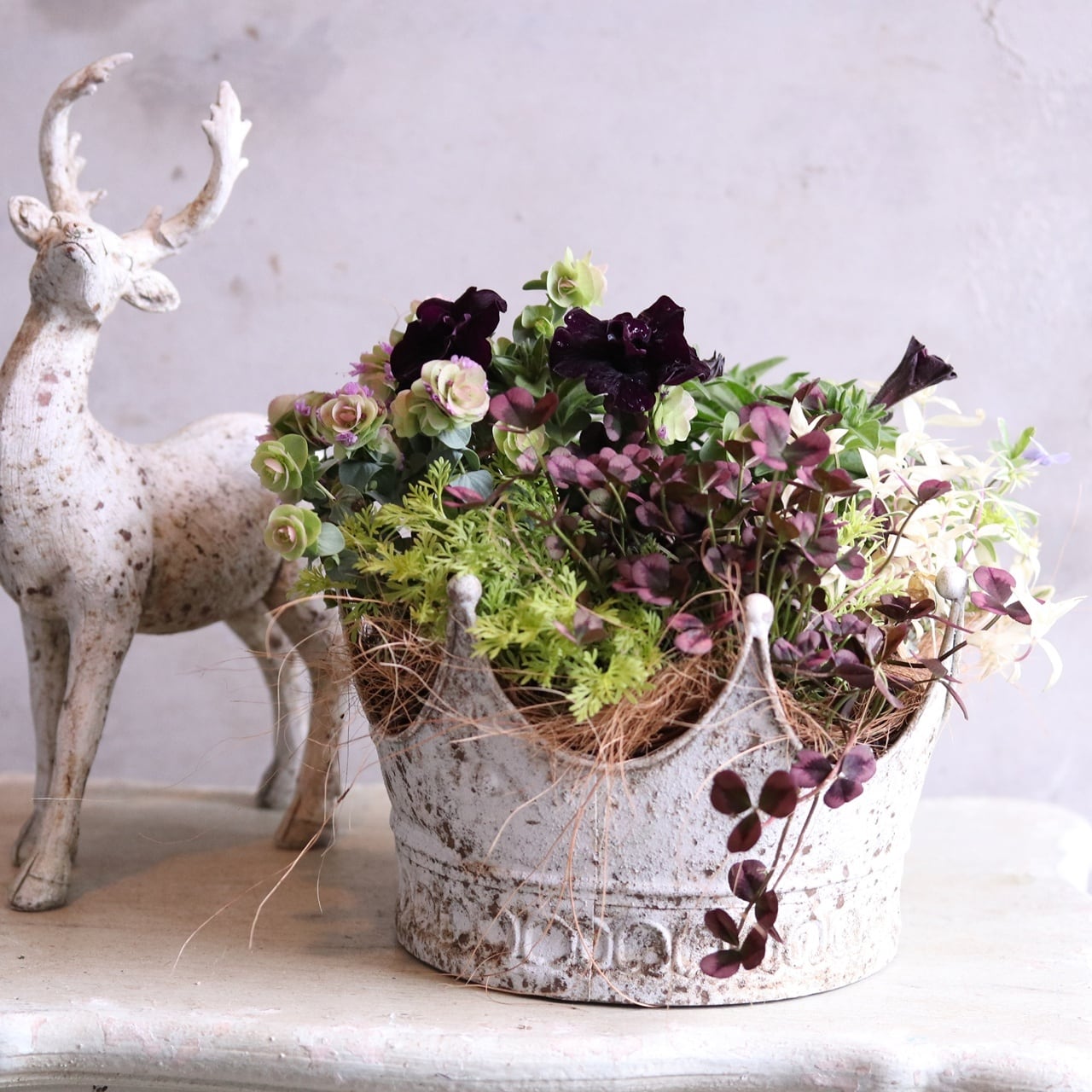 モンディマンシェ 寄せ植え プレゼントにおすすめ|クラウンポットのペチュニアミカブラックワイン|届いてすぐ飾れる完成品|玄関インテリア|母の日・新築・開店祝いギフト