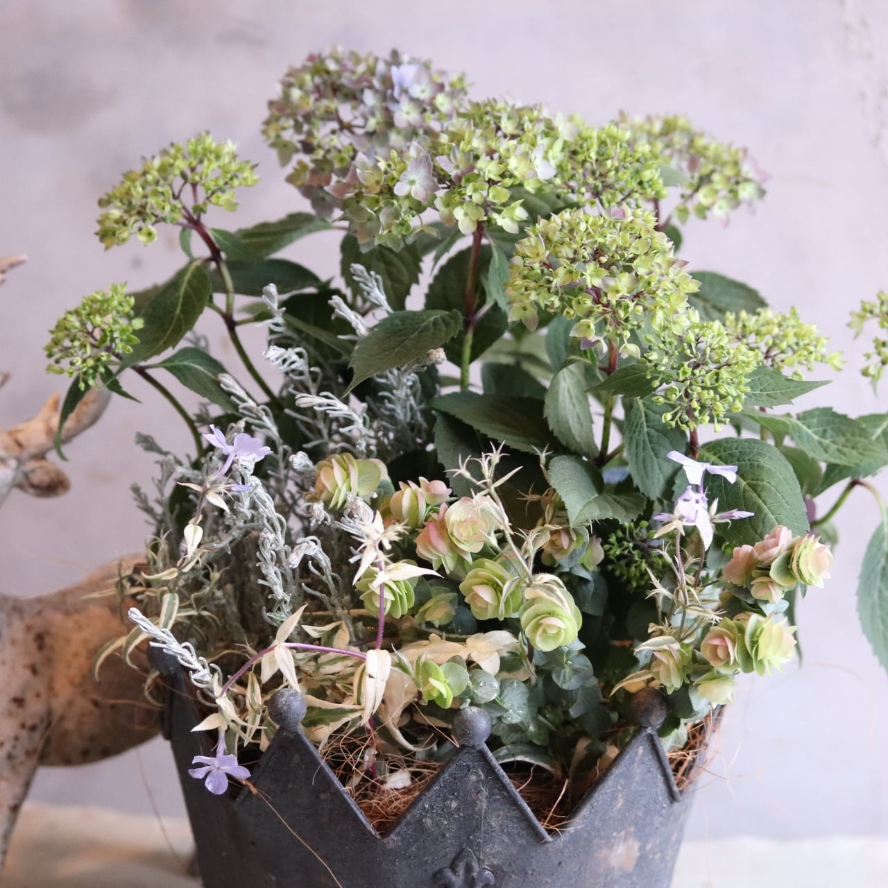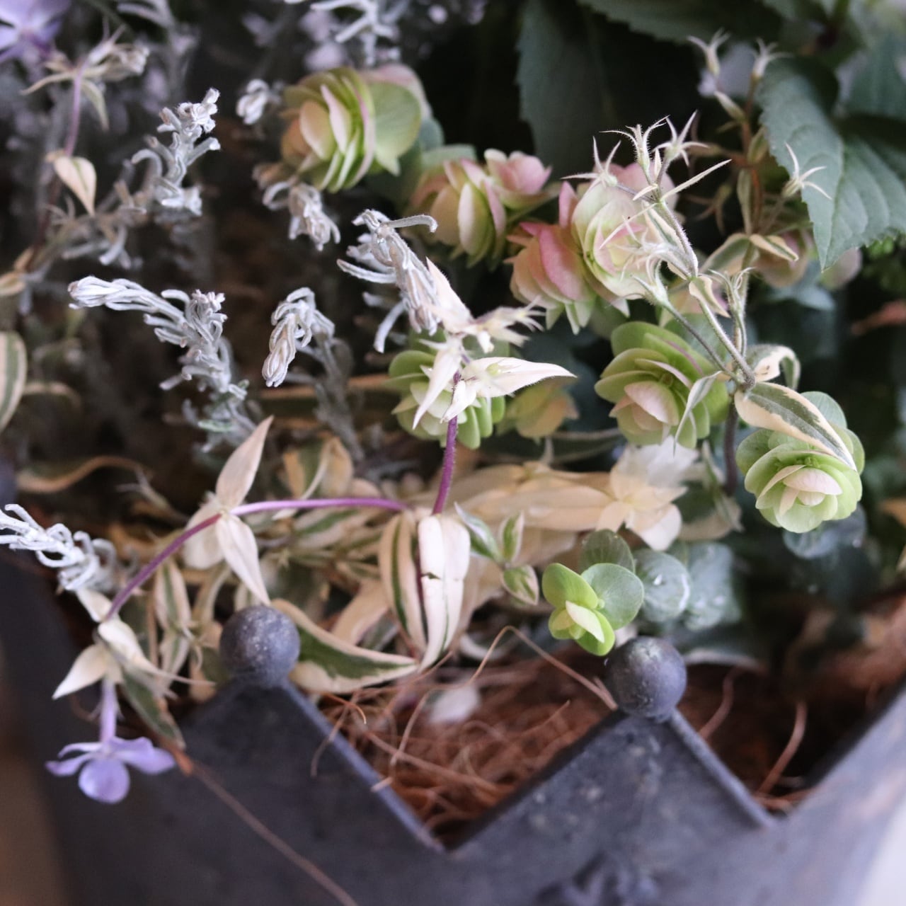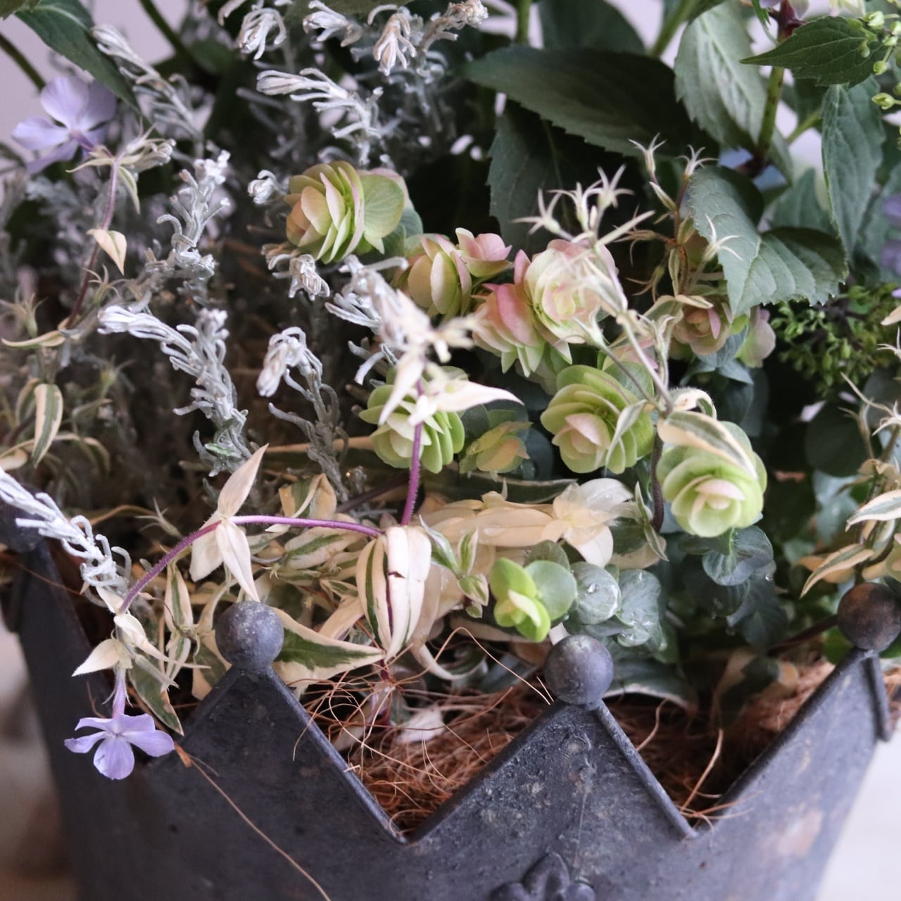 リーフを合わせた大人シャビーな寄せ植えです。
