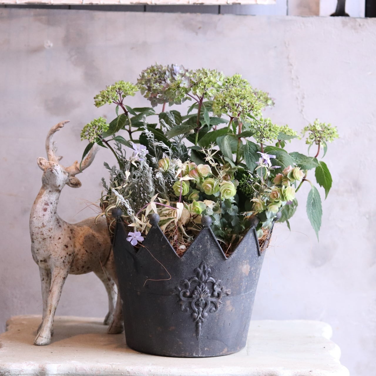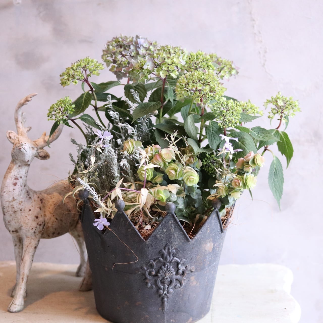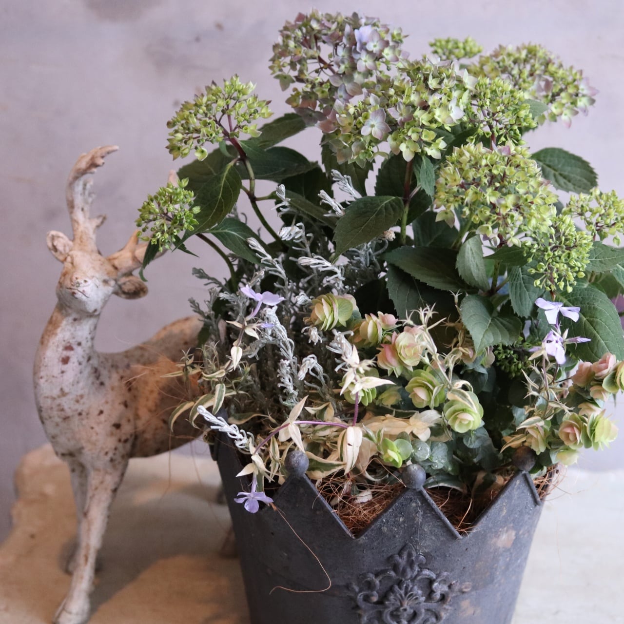 リーフを合わせた大人シャビーな寄せ植えです。