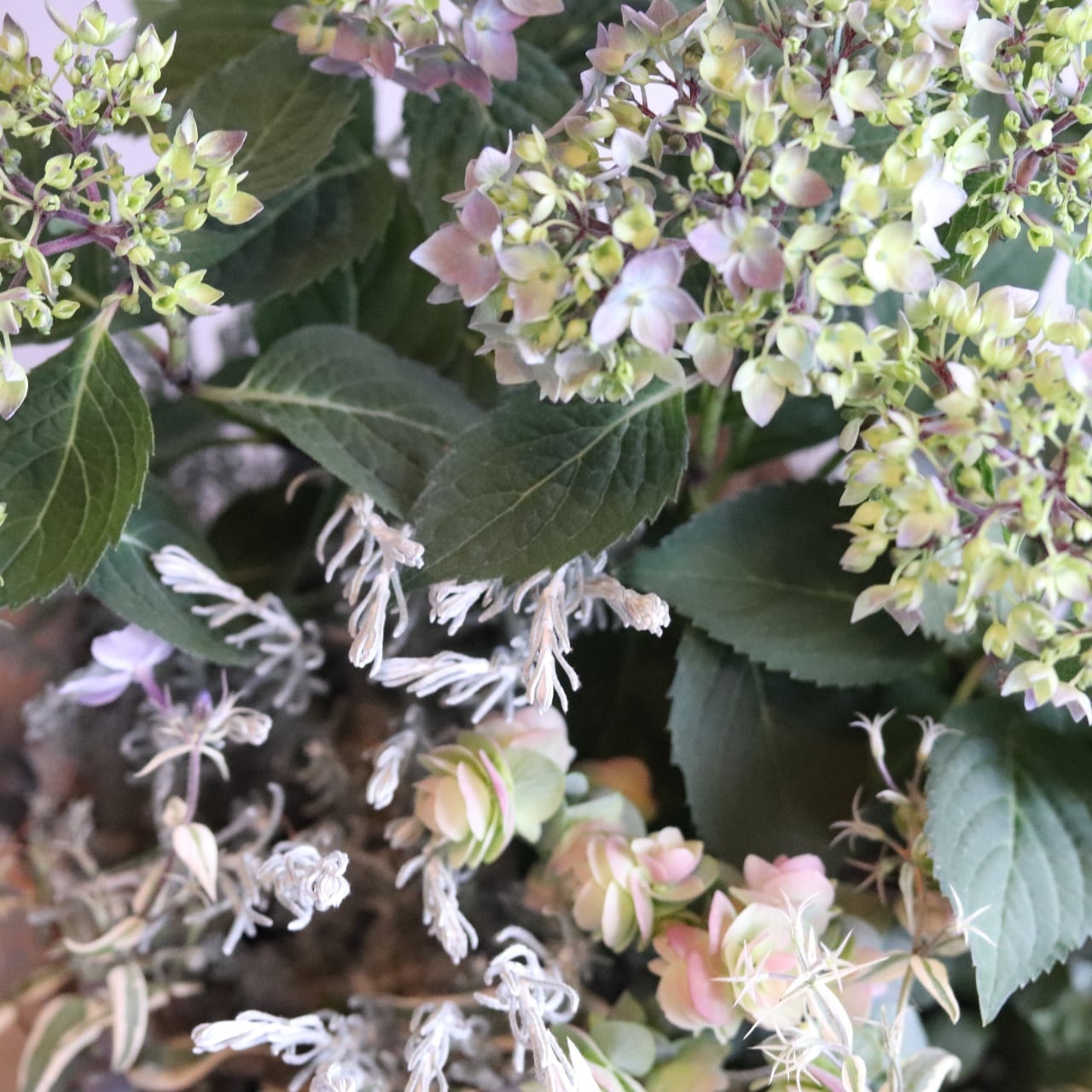 シックな大人カラーのヤマアジサイの満天星と