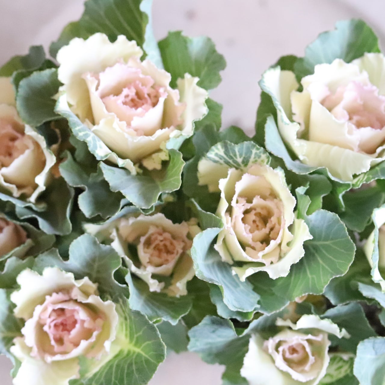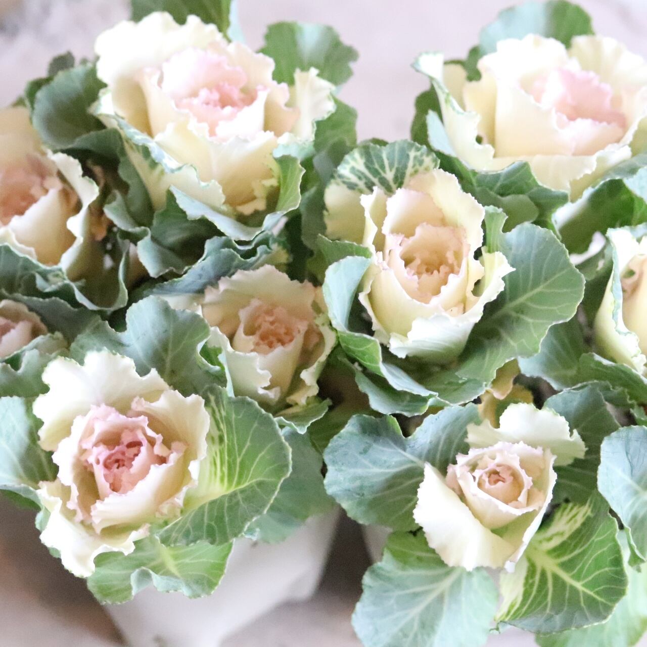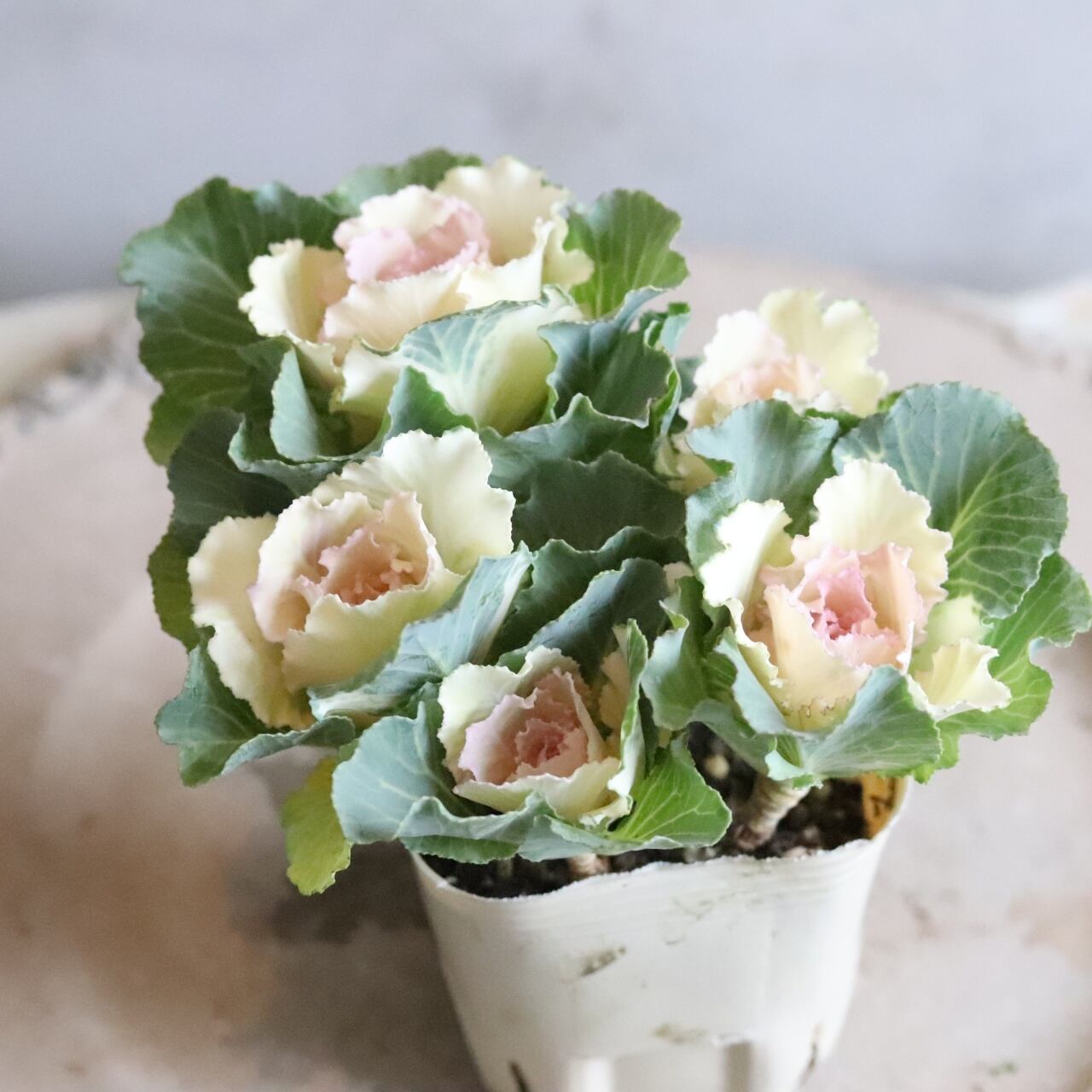 フリルが可愛いなるで薔薇のような優しいカラーのハボタン