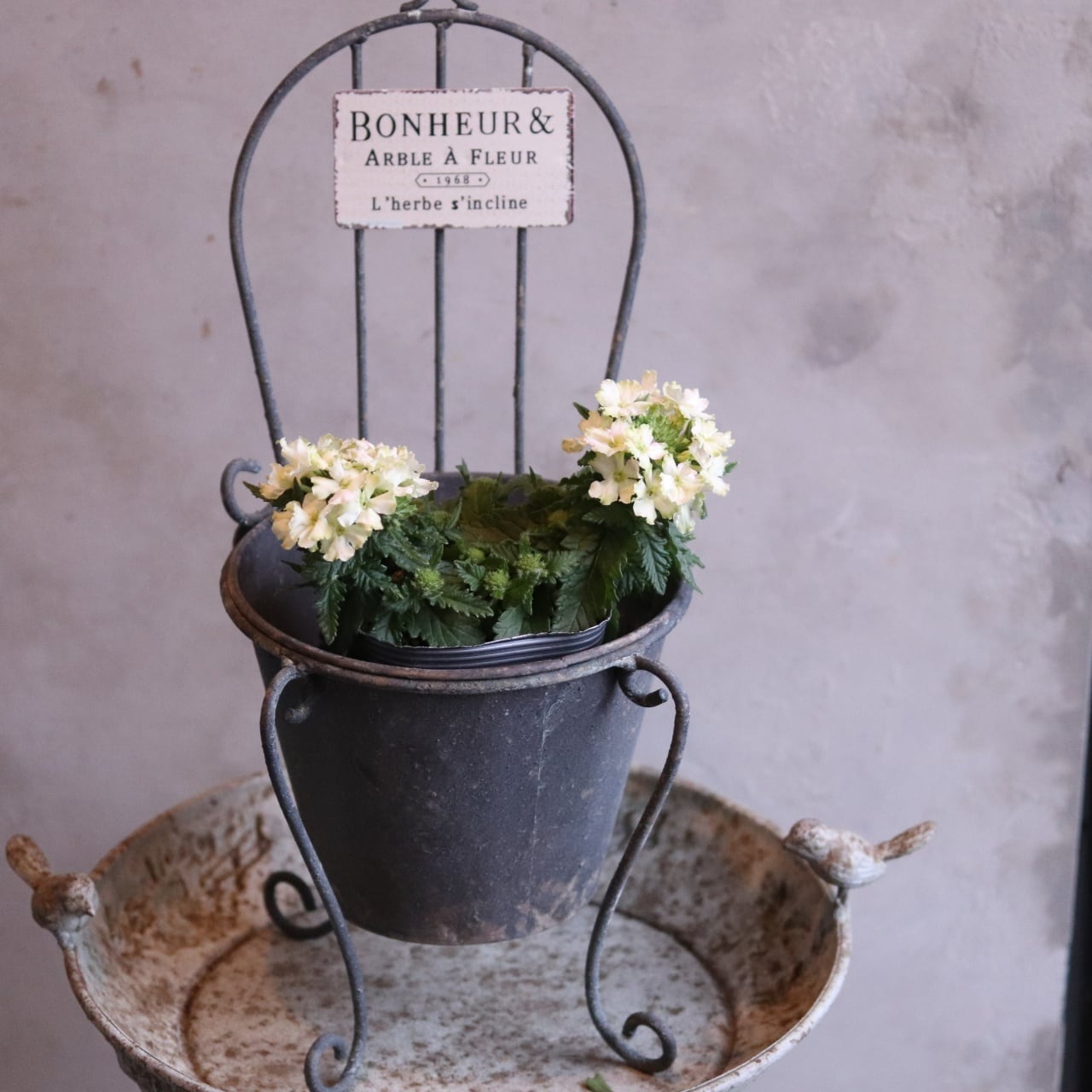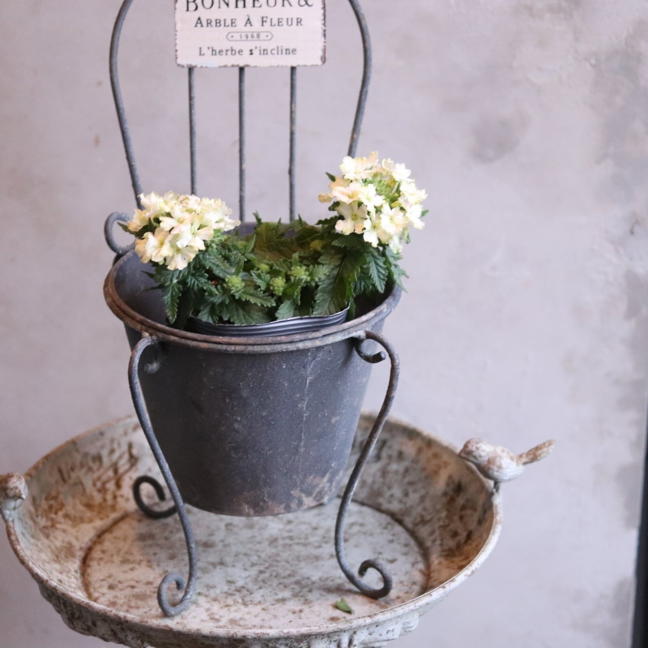 寄せ植えに動きと奥行きが生まれ、ナチュラルでこなれた雰囲気に仕上がります。